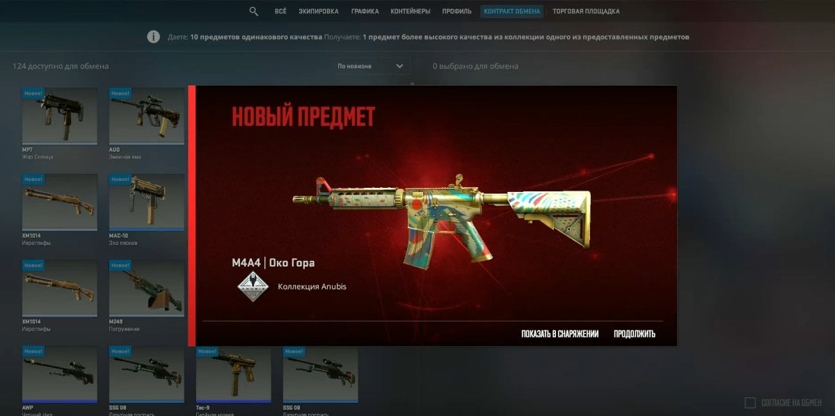 Контракты обмена в CS2 всегда несут в себе элемент риска. Выпадающий скин выбирается случайным образом и не всегда оказывается дороже тех, что были использованы в обмене.