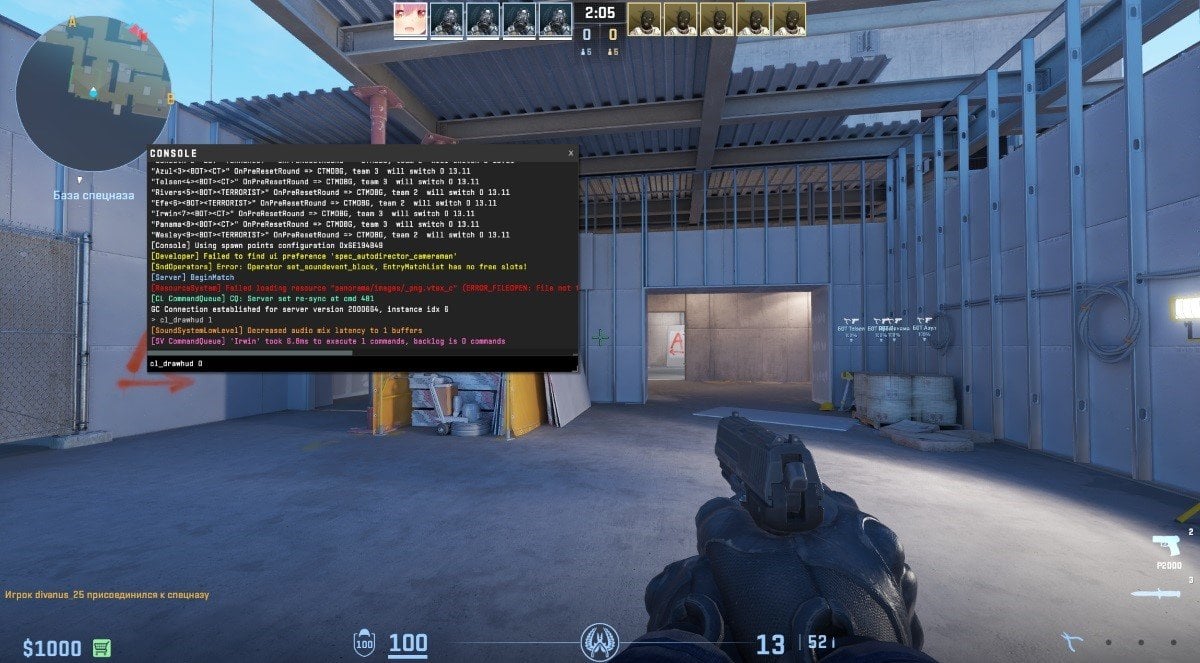 Для того, чтобы полностью скрыть интерфейс, воспользуйтесь командой «cl_drawhud 0». Если хотите вернуть все на место, вместо 0 напишите 1.