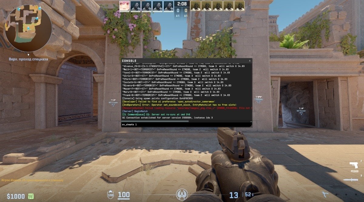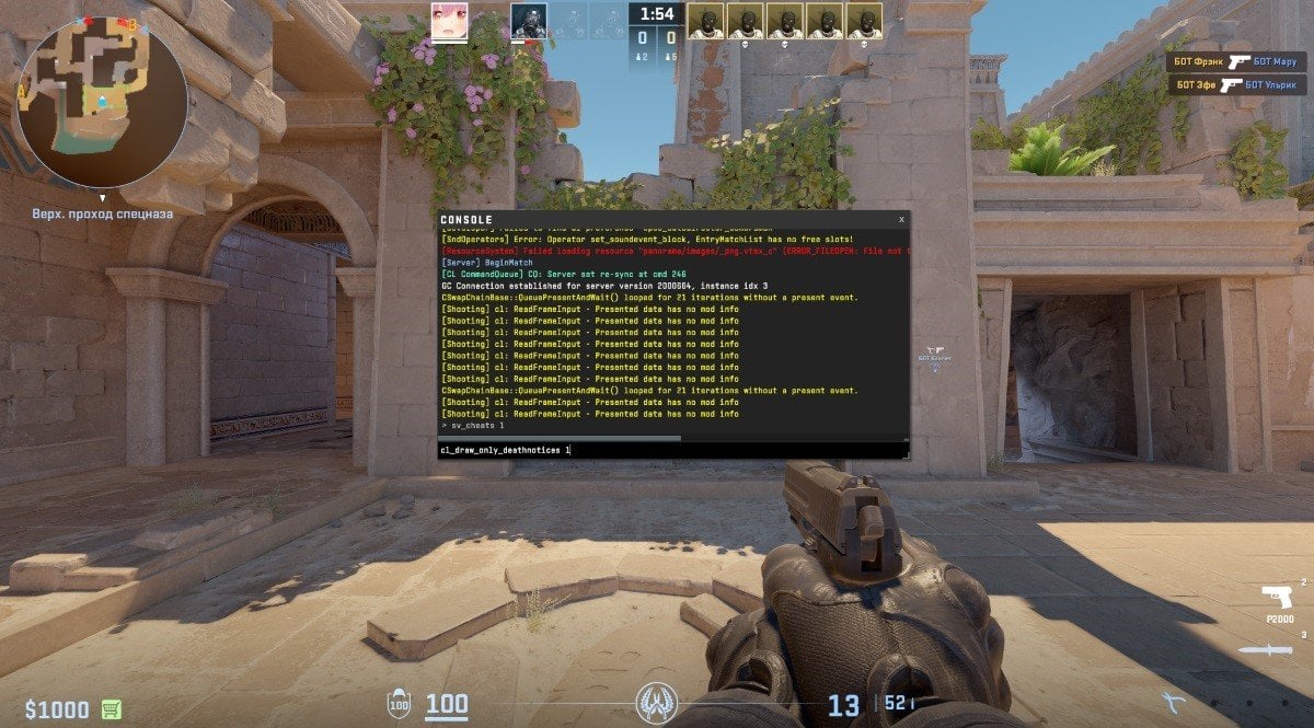 Для большинства манипуляций с интерфейсом потребуется активировать режим читов. Откройте консоль разработчика (клавиша «~»), введите команду «sv_cheats 1» и нажмите «Enter». Теперь вам останется прописать команду «cl_draw_only_deathnotices 1», чтобы убрать почти все с экрана.