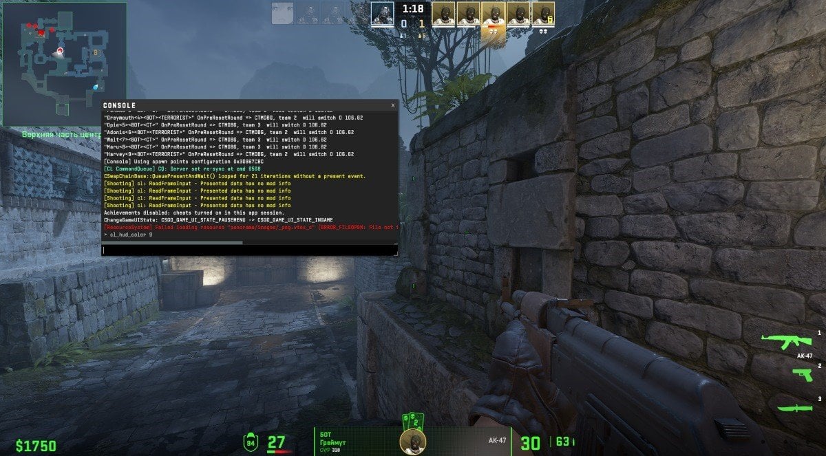 Также цвет интерфейса можно настроить с помощью консольной команды «cl_hud_color Х», где Х — цифра, отвечающая за цвет. Эта команда доступна в любом игровом режиме и не требует активации читов.