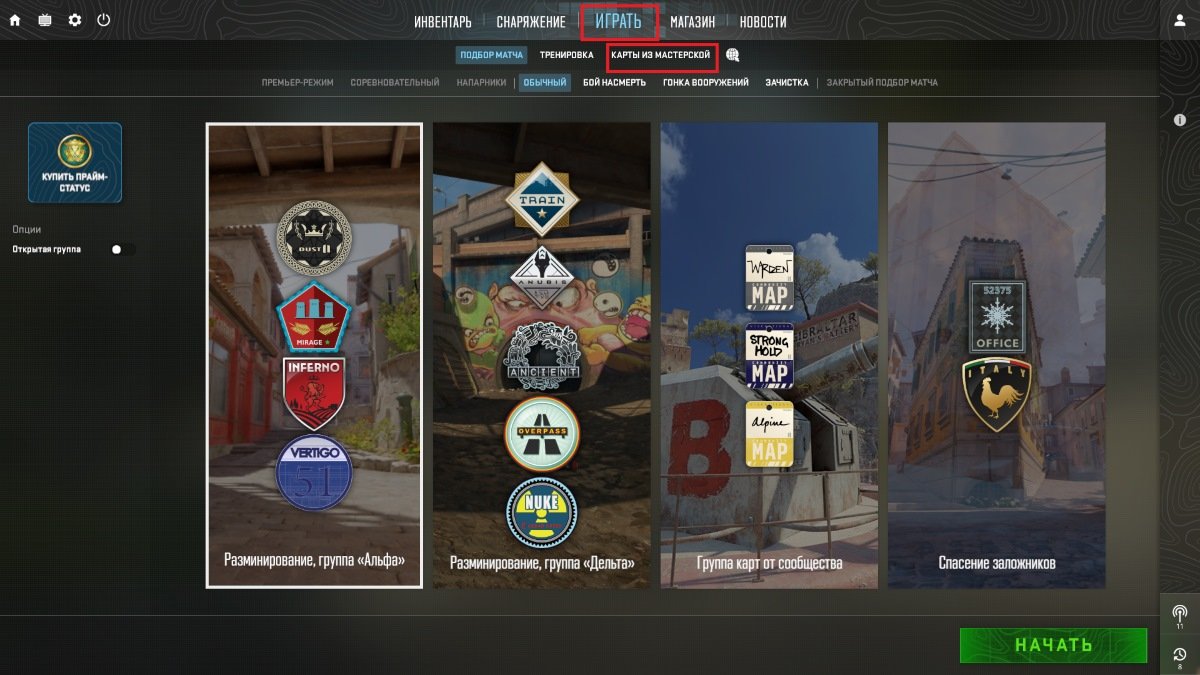 Как добавить карты из мастерской в CS2