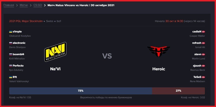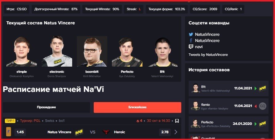 На странице каждого матча вы сможете увидеть составы играющих команд, прогнозы букмекеров и котировки на этот матч от разных БК, чтобы сравнить и выбрать наиболее выгодный.