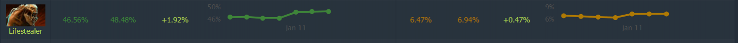 В новом патче ему упростили стадию лайнинга, в виду добавления 3 единиц базового урона и увеличения лайфстила с Feast. Теперь, тот же Марс или Кентавр не выглядят такими страшными, как казалось раньше. Впрочем, герой до сих пор остается достаточно ситуативным, однако, теперь его винрейт вполне может достичь отметки в 50%. Вряд ли он скоро появится в профессиональных играх, но кто мешает вам выигрывать с его помощью в пабах?