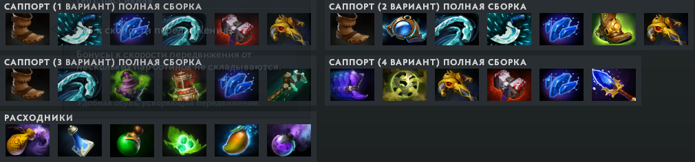 Так как наша героиня универсал, она может играться практически на всех ролях. Поэтому сборки могут сильно отличаться, но есть и базовые для керри и мида, а также для саппорт позиции. Поэтому давайте рассмотрим несколько вариантов для разных ролей в игре: