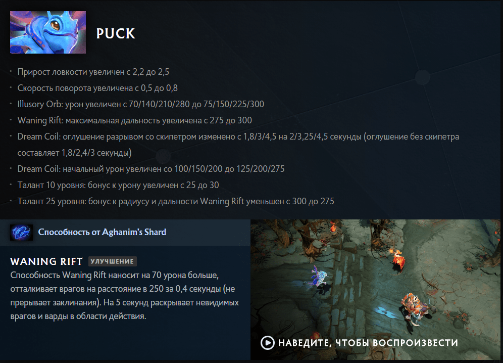 Как говорилось ранее, в Доте всё складывается из мелочей. Если посмотреть на улучшение от Waning RIFT, то можно заметить одну простую вещь. Я про 5 секунд раскрытия невидимости. В игре, где инвиз = неуязвимость, такая дополнительная опция может здорово помочь команде. Тем более, что сейчас у Пака есть возможность доапгрейдить свой даггер и стать еще более опасным. Не забываем также об апгрейде Eul, поскольку этот предмет частенько появляется в его руках.