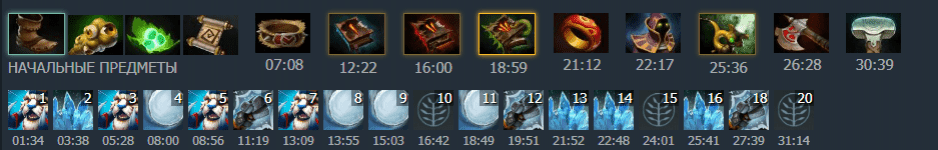 С итембилдом все гораздо сложнее. Тускар может играть в соло, либо собирать предметы на команду. На мид он закупает себе Tango, Boots of Speed и пытается рашить Necronomicon. Или же вообще играет без ботинка, нацеливаясь на быструю покупку некров. В обоих случаях предмет необходимо собрать до 9–10 минуты. Иначе пользы от артефакта будет меньше, чем мы ожидаем.