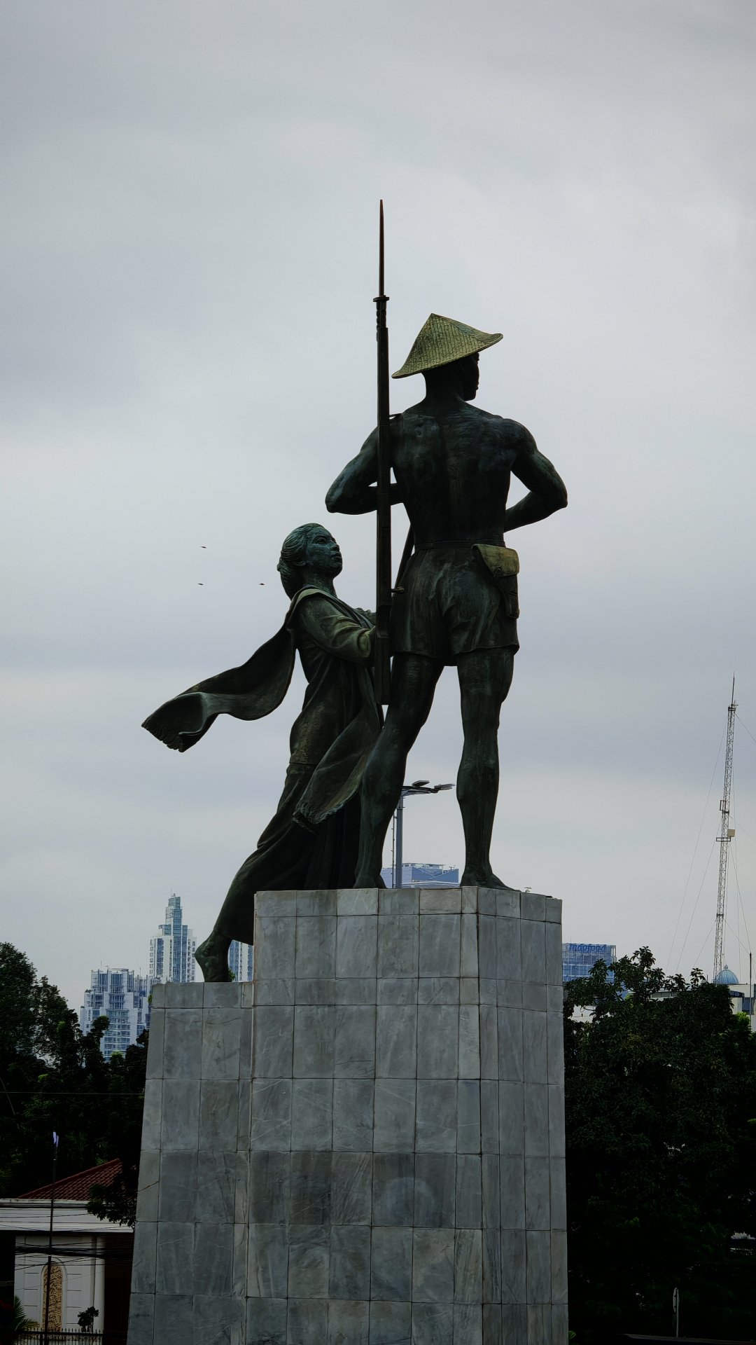 Интересное, что удалось увидеть — почти в самом центре Джакарты находится бронзовая «Статуя героя». Это монумент, подаренный в 1963 году СССР недавно обрётшей независимость Индонезии. Создал его советский скульптор Матвей Манизер. Изображает статуя "простую крестьянскую семью (муж, жена, ребенок), несущих рис, символизируя тяжелый труд и борьбу за независимость Индонезии".