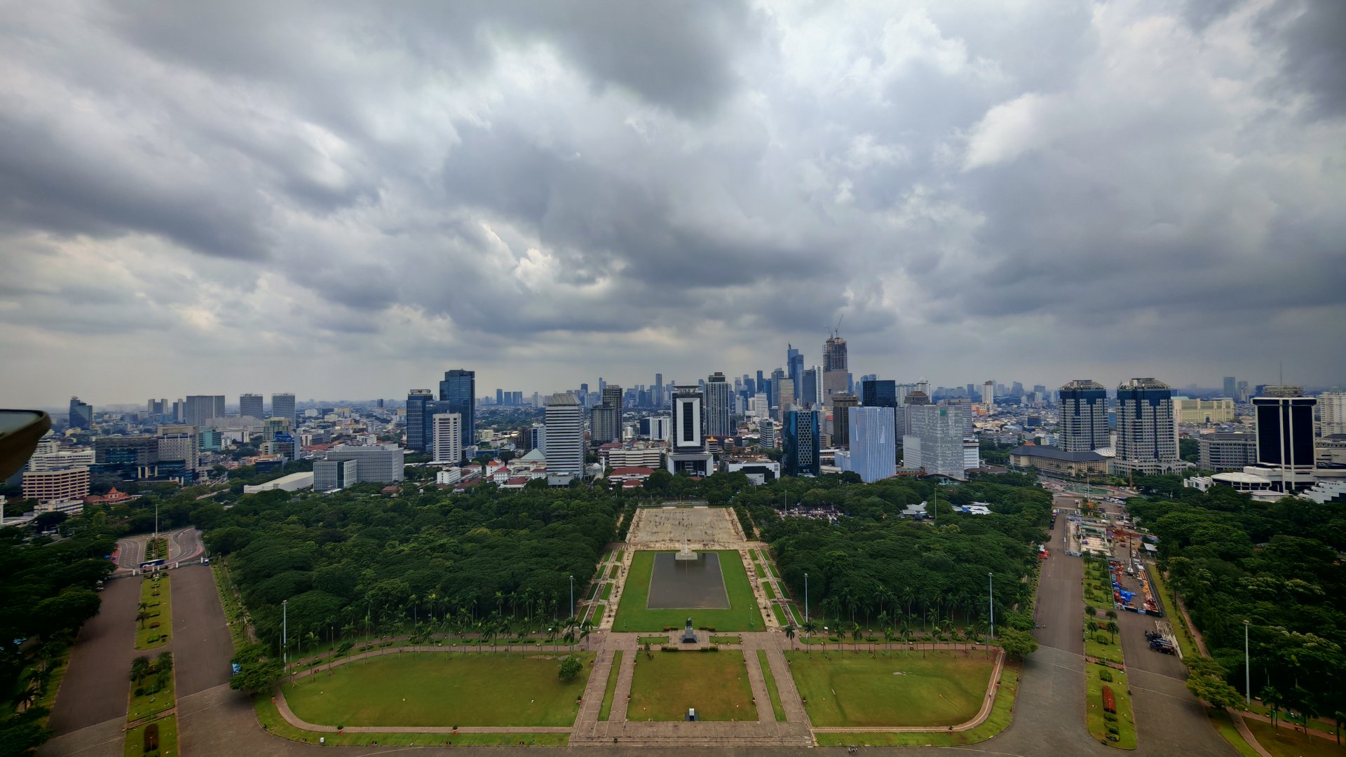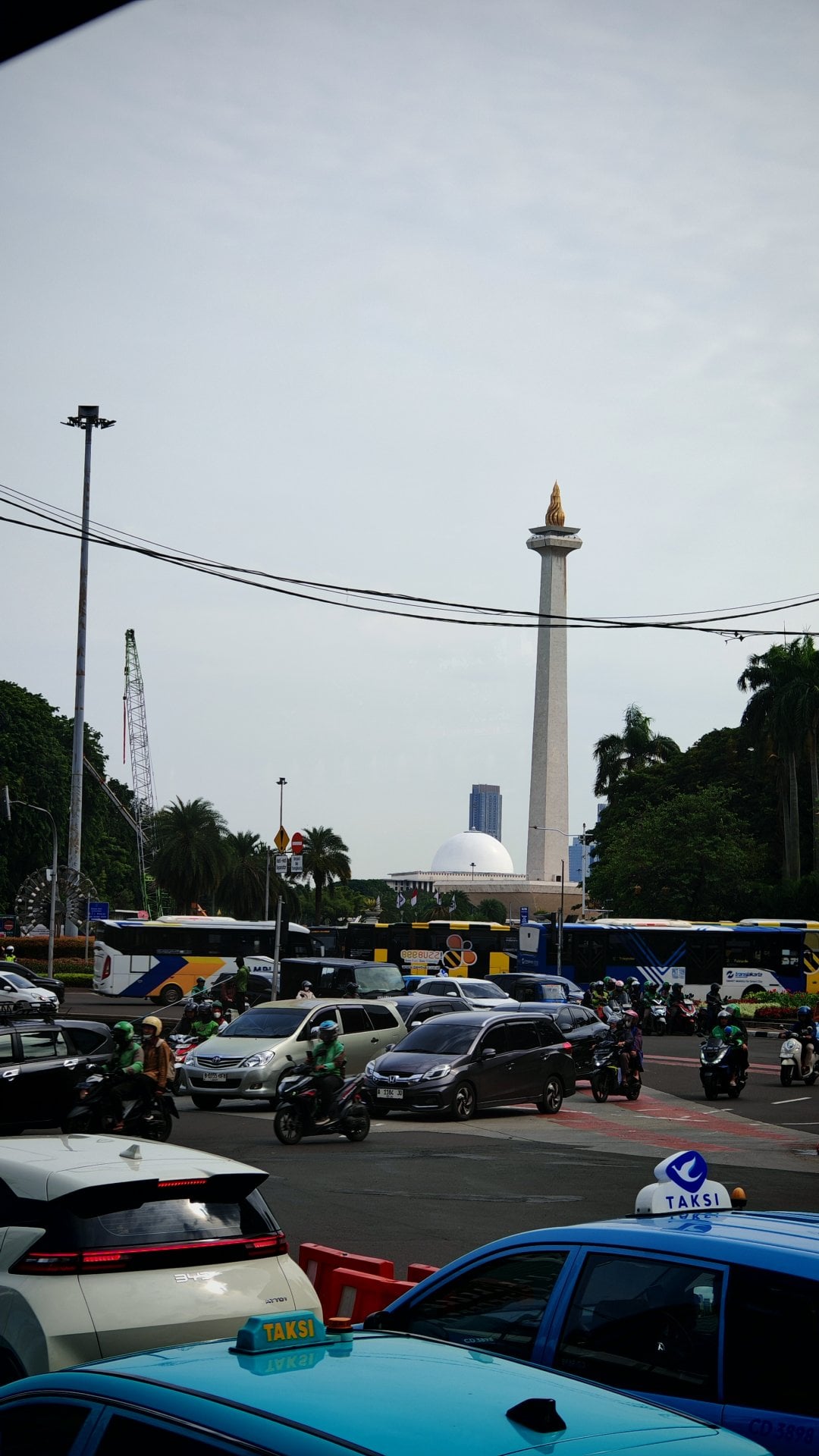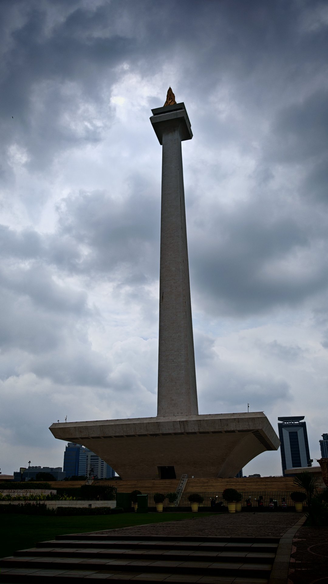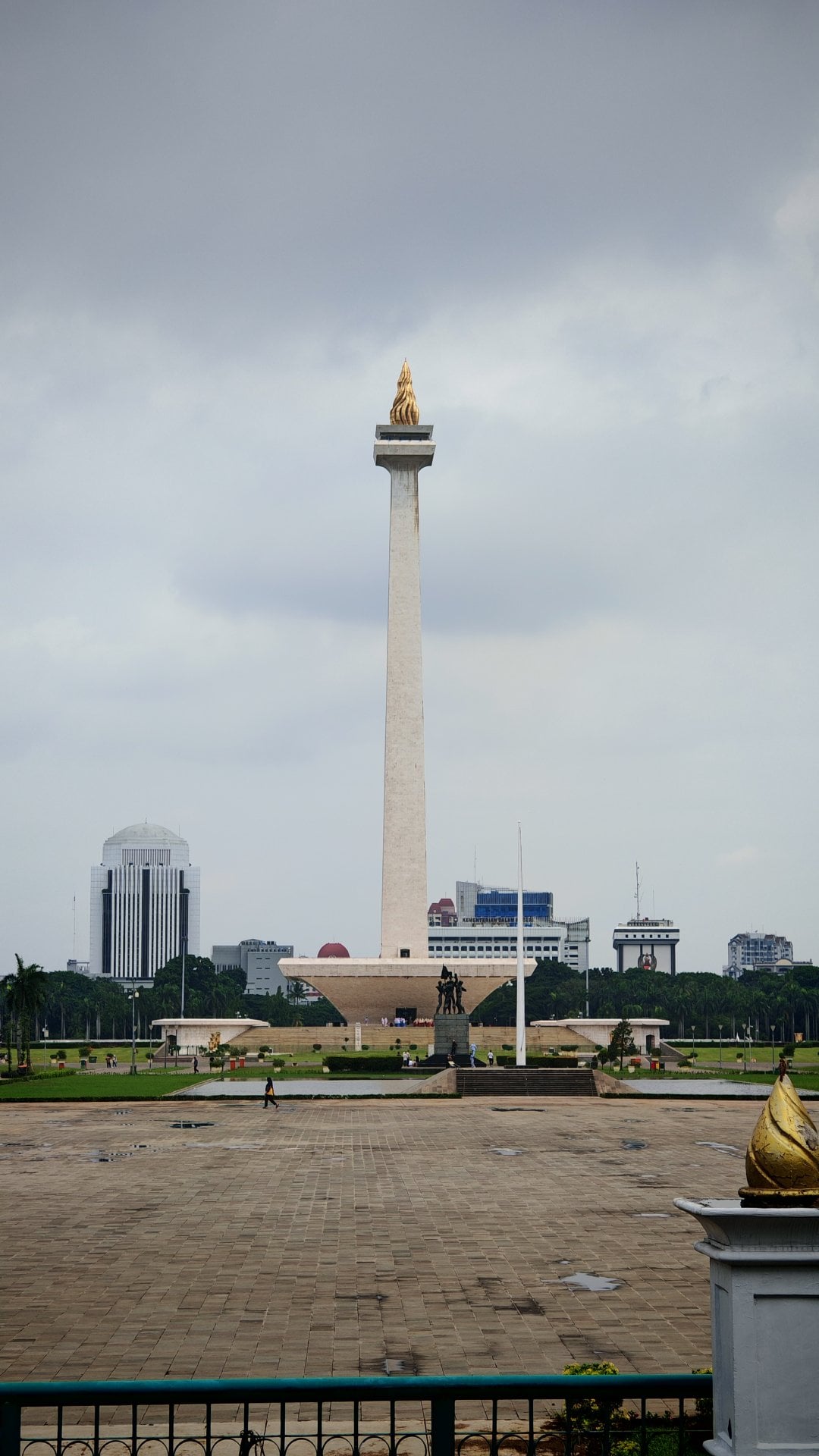 Так мы катались по городу под рассказы гидов о местных достопримечательностях около часа. Пока в какой-то момент не приехали к Национальному Монументу. Он представляет собой огромную стеллу со смотровой площадкой наверху. Как нетрудно понять, символизирует данная постройка свободу и независимость индонезийцев от других наций и государств.