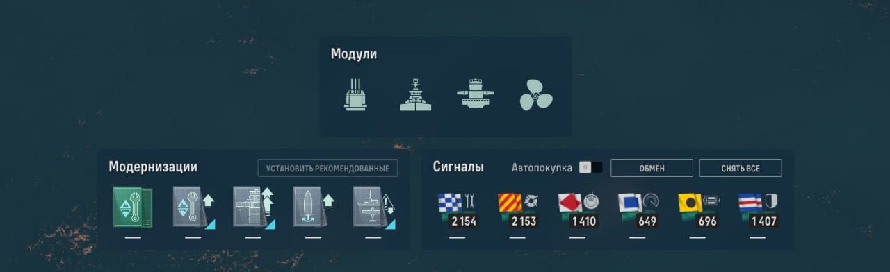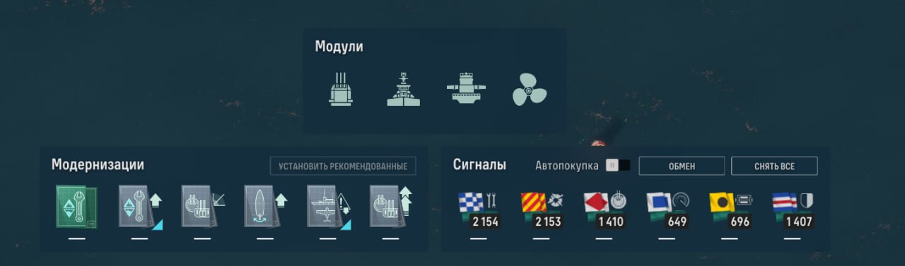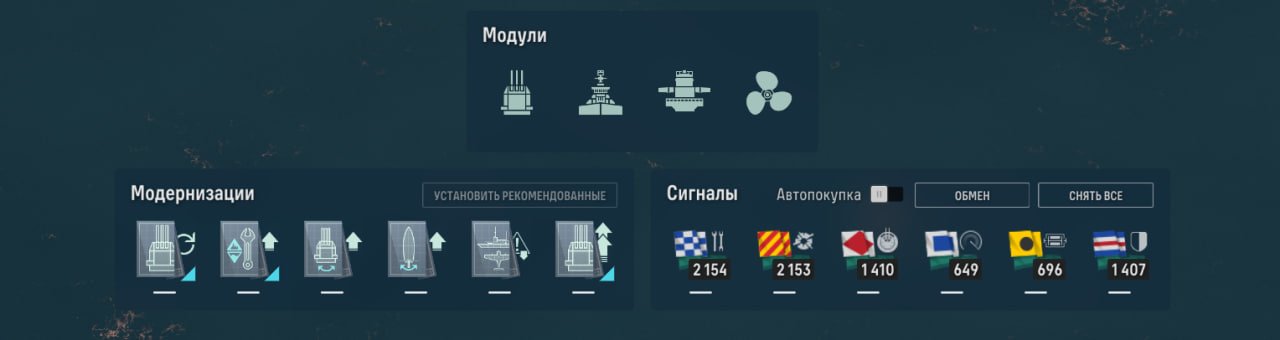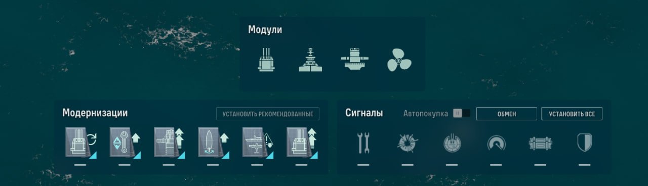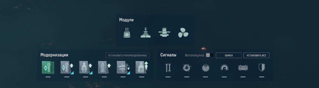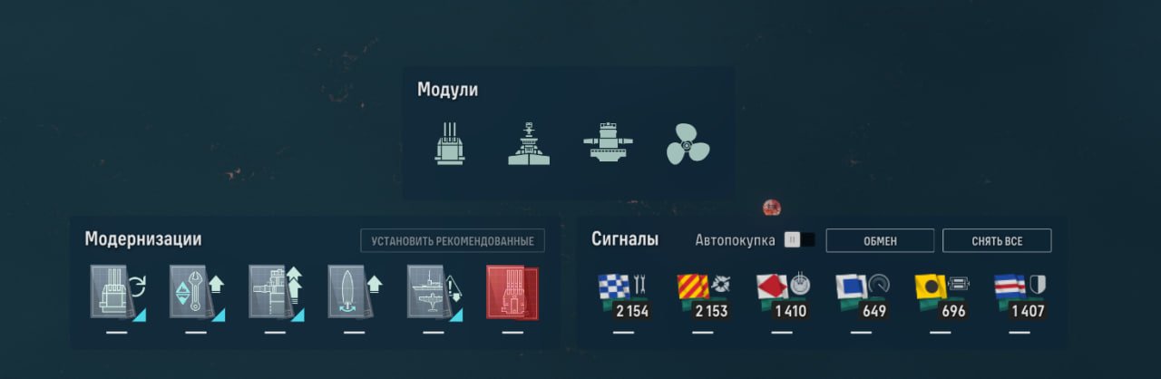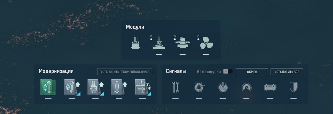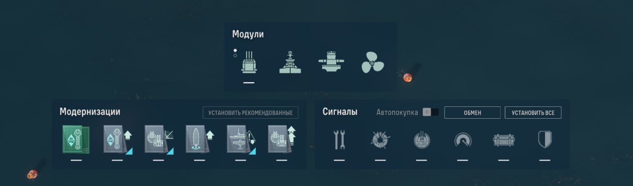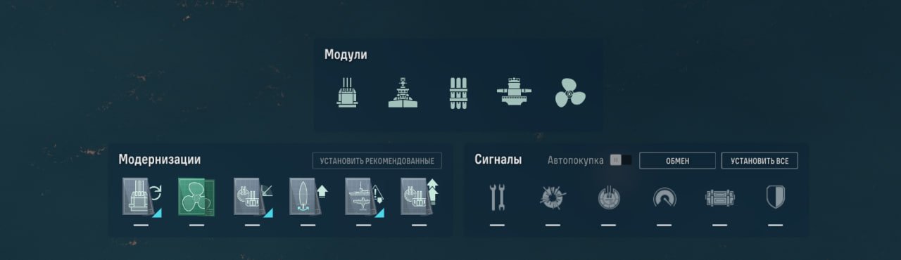 Также у линкора есть ремонтный дивизион, позволяющий восполнить большое количество здоровья. Качать его, как ни странно, стоит в ПМК, потому что брать больше нечего.