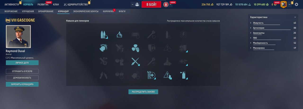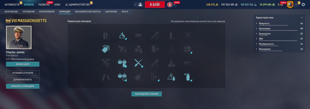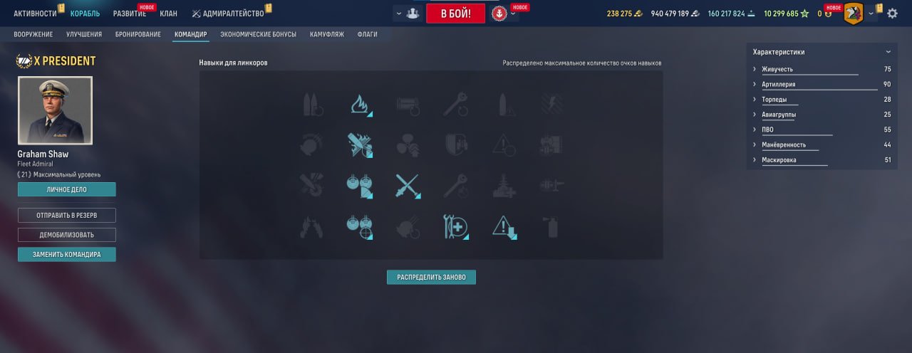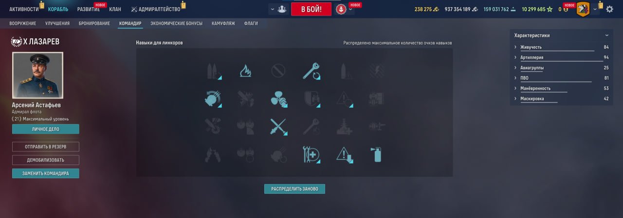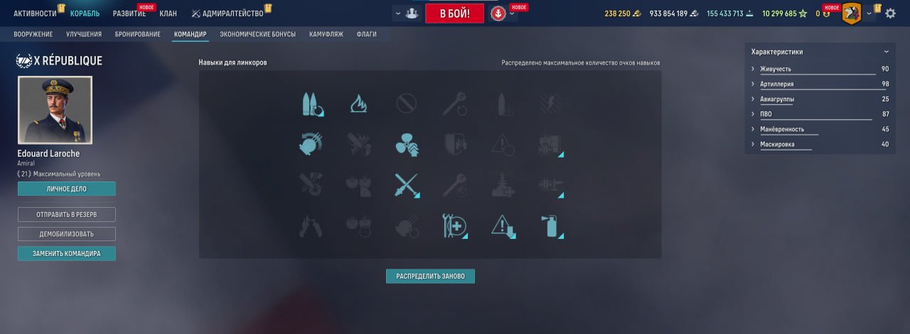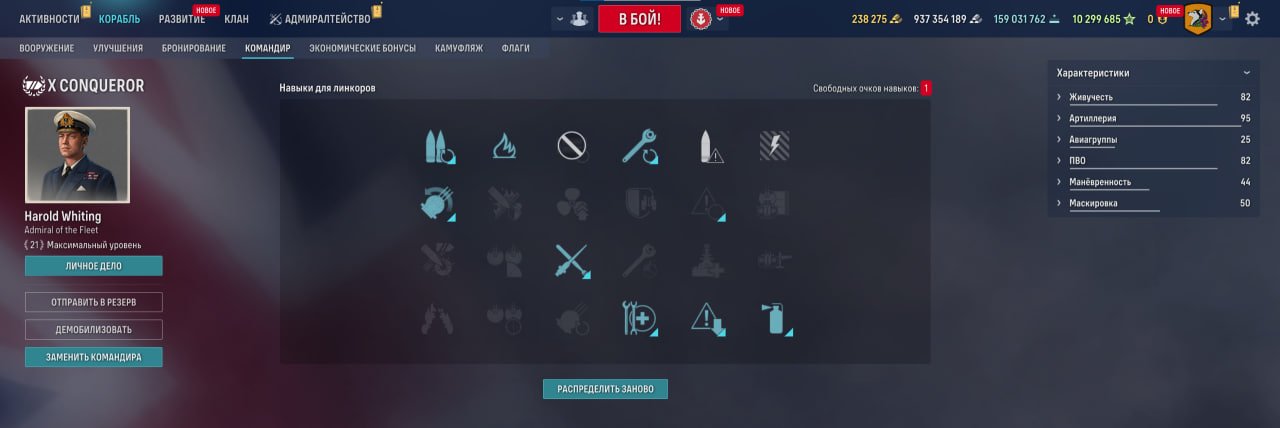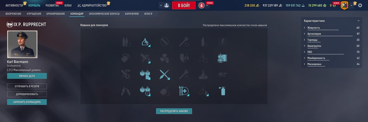 Также у линкора есть ремонтный дивизион, позволяющий восполнить большое количество здоровья. Качать его, как ни странно, стоит в ПМК, потому что брать больше нечего.