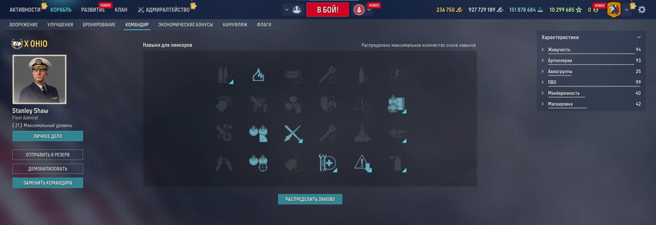 Американский лк X уровня, который раньше был доступен за очки исследования. Вполне вероятно, что скоро корабль снова вернется в Адмиралтейство. Качаем Огайо в ПМК, играем на средне-ближней дистанции, поскольку он, как и другие американцы, имеет своеобразную баллистику и не самую лучшую точность.