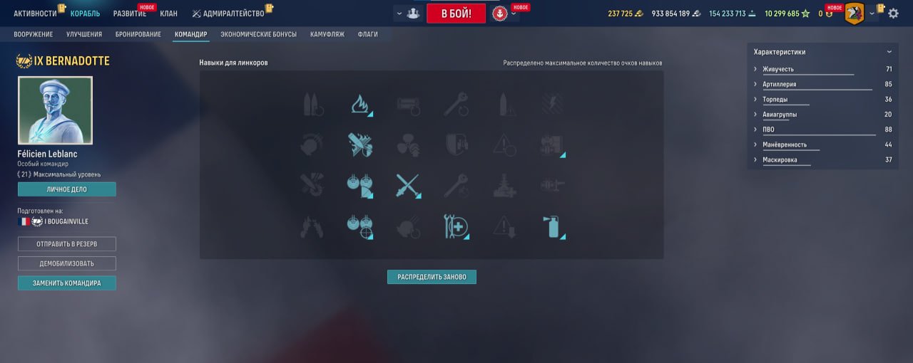 Французский прокачиваемый линкор X уровня, который в свое время забрал все лавры у Монтаны. Мощные пушки с хорошим калибром, отличная скорость полета снарядов, сам корабль тоже приятно удивит скоростью, однако с точностью у него проблемы. Броня не самая лучшая, но и слишком плохой ее назвать нельзя.