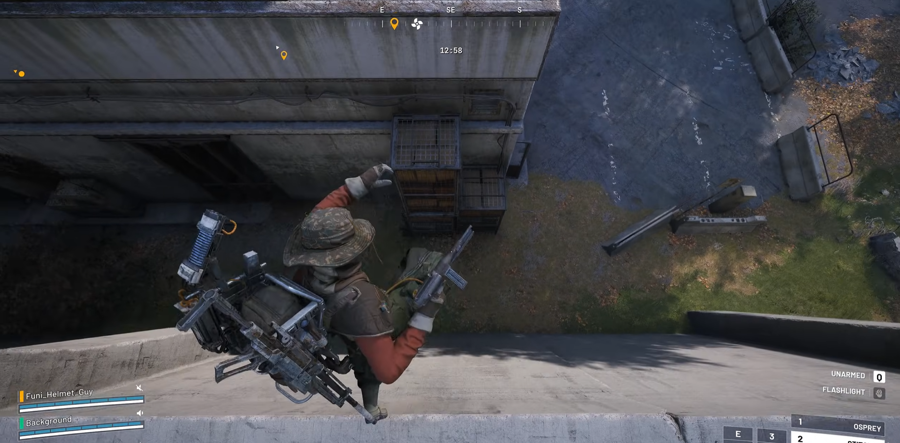 Спрыгнув с уступа, сразу зажмите пробел (или кнопку прыжка на консоли), чтобы повиснуть, а затем используйте стрейф влево/вправо и ещё раз прыжок, чтобы безопасно спускаться между этажами.
