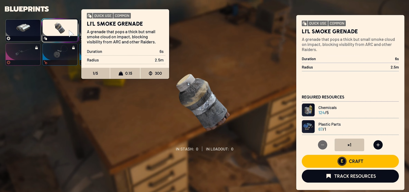 Если ваш рюкзак полон, вы можете разбирать найденные предметы на компоненты, которые могут поместиться в уже имеющиеся стаки материалов. Полезно, если мест в инвентаре не осталось, но вес ещё заполнен, и хочется унести побольше базового лута из рейда.