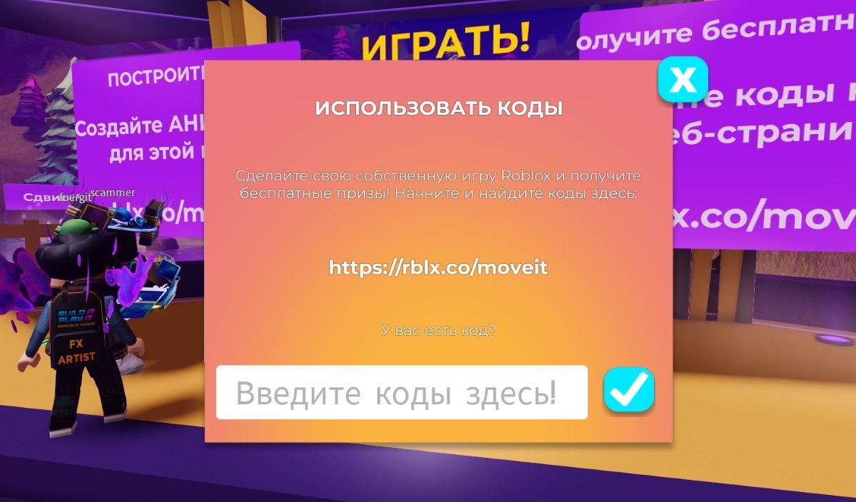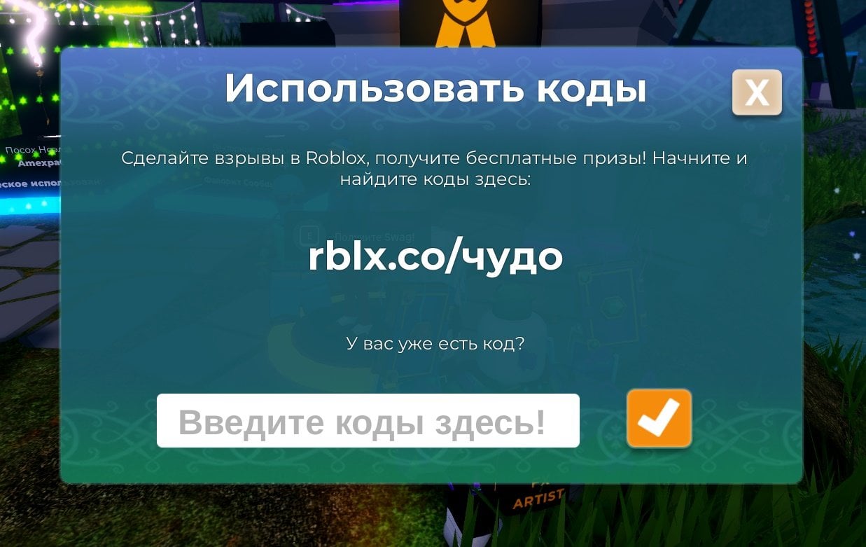 Следующие промокоды можно активировать через раздел «Активируйте коды Роблокс»: