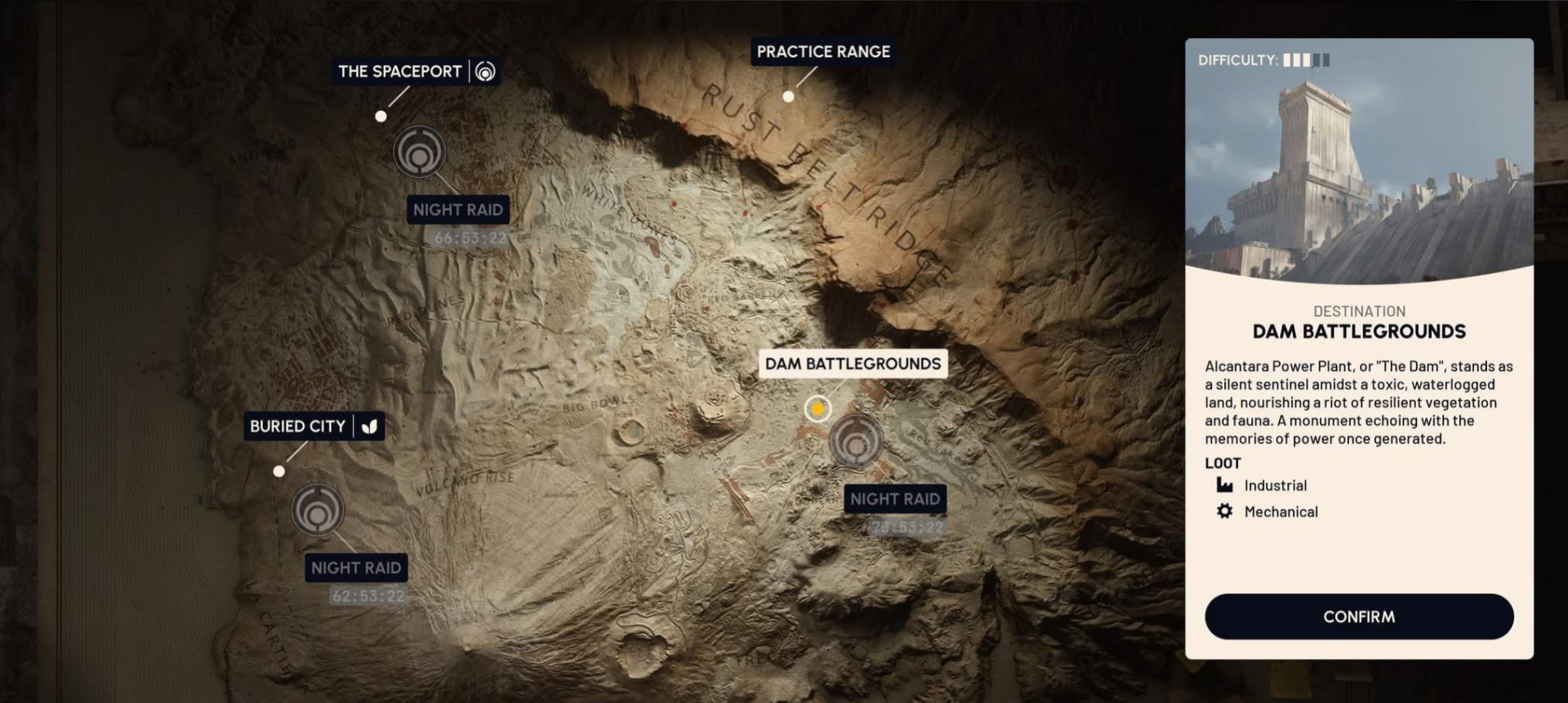 Во время теста была доступна локация Dam Battlegrounds. В полной версии нас ждут еще четыре: "Погребенный город" (Buried City) с городскими руинами, "Космопорт" (Spaceport) — заброшенный стартовый комплекс, "Синие врата" (Bluegate) в горной местности и загадочная "Стелла Монтис" (Stella Montis), о которой разработчики пока молчат.