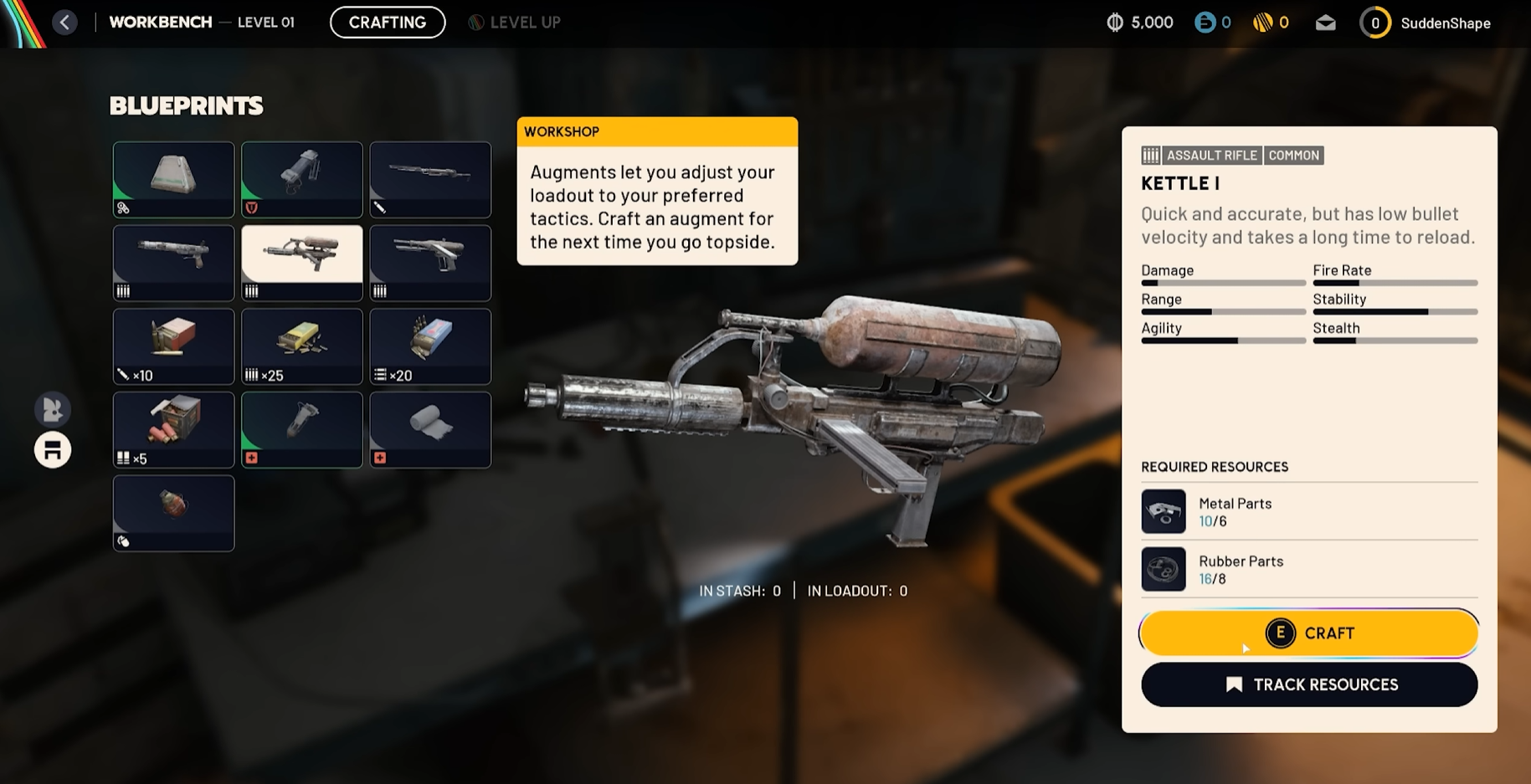 Собственно, комната здесь не только и не столько для отдыха, сколько для создания чего-то полезного из кучи хлама. Как и в любом extraction-шутере, крафтинг играет ключевую роль. В Мастерской мы будем создавать новое оружие, гаджеты, аугментации, щиты, а также улучшать текущее снаряжение и перерабатывать собранные ресурсы. Объекты мастерской можно будет улучшать, открывая доступ к более совершенным опциям.