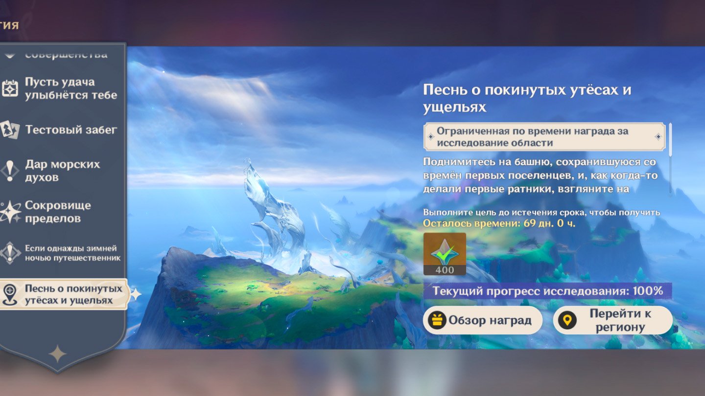 С выходом последних патчей изучать карту стало еще выгоднее. Начиная с версии 5.1, работает система временных наград. Если активно исследовать новый регион в период выхода обновления и закрыть карту на определенный процент, то система выдает бонусные 400 примогемов.