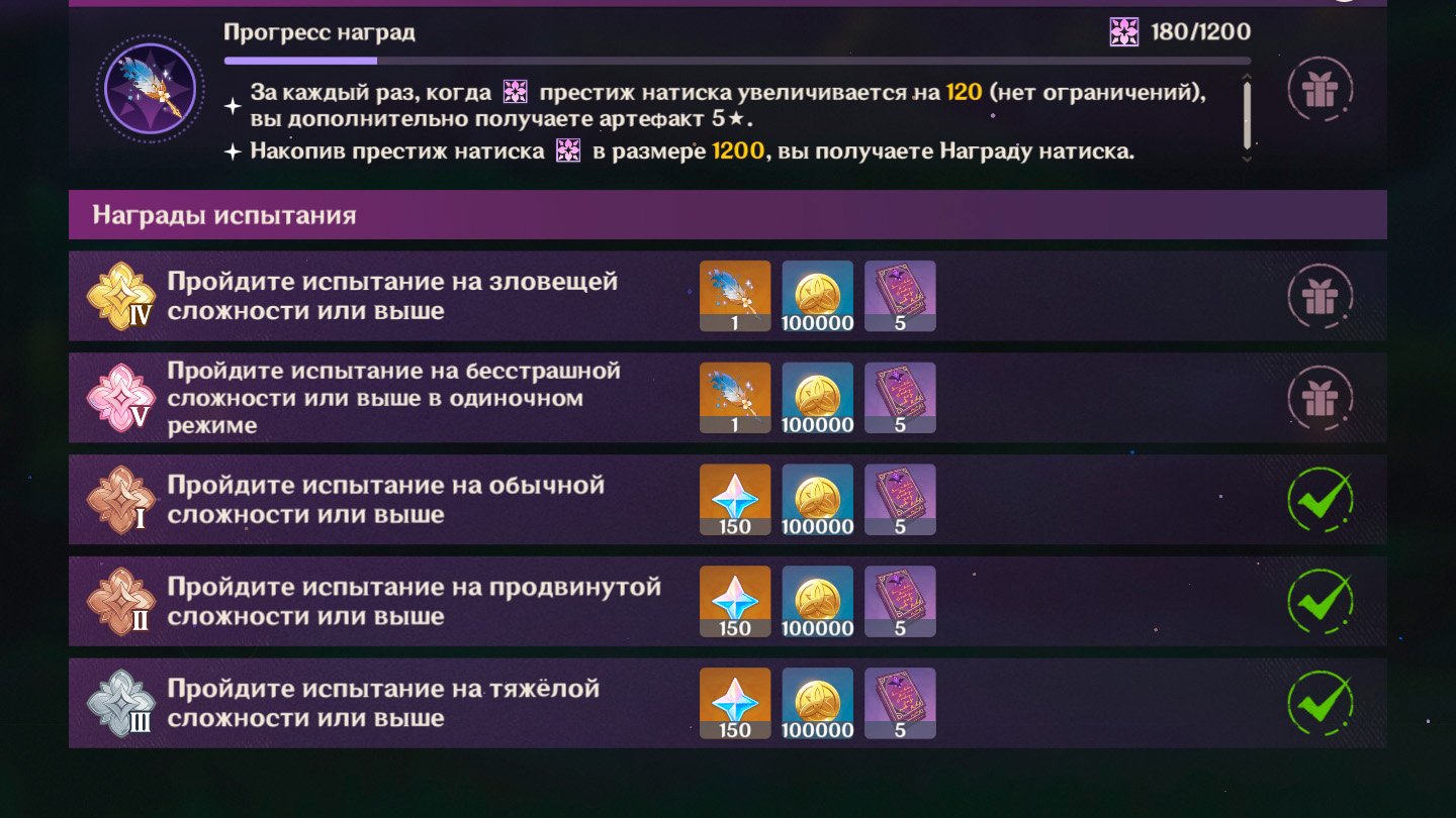 Мрачный натиск работает по схожему принципу, но фокусируется на еще более сложных боевых испытаниях. Для фарма примогемов достаточно закрыть третий уровень сложности. Режим постоянно обновляется вместе с патчами.