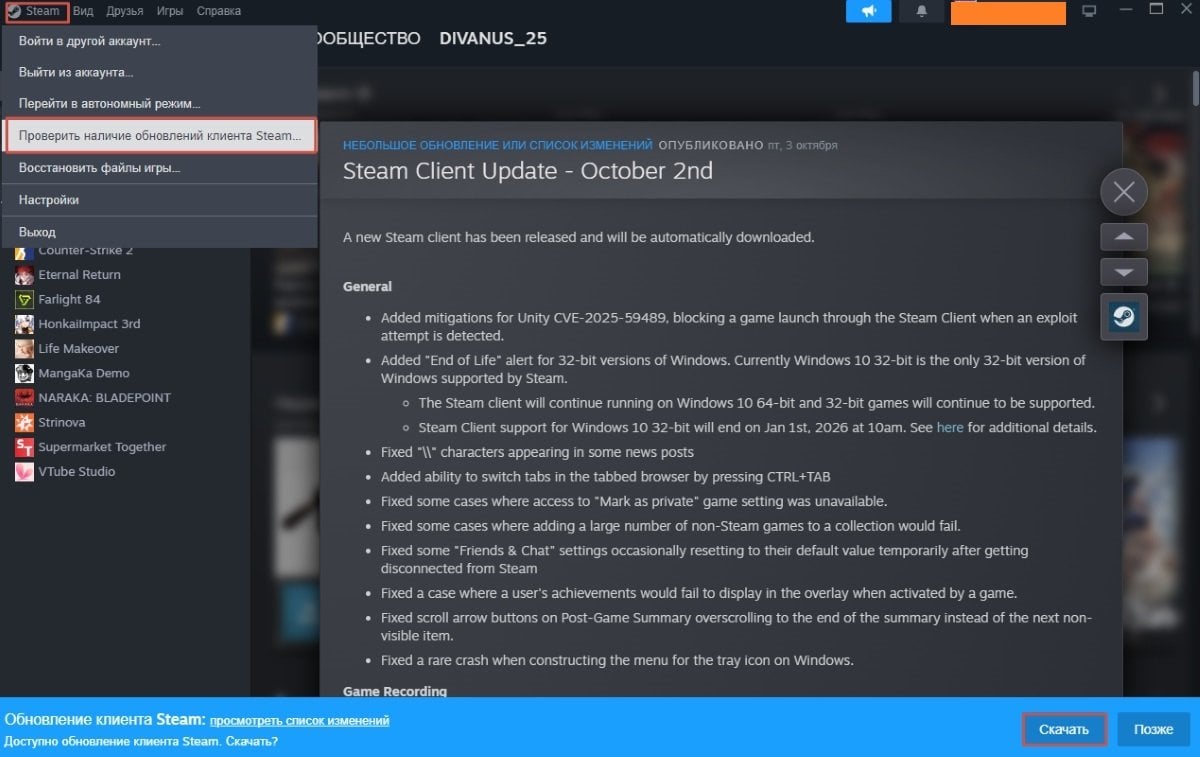 - Новые функции и возможности. Разработчики Steam постоянно добавляют новые инструменты для геймеров. Это могут быть улучшенные системы рекомендаций, новые способы общения с друзьями, более удобный интерфейс, новые функции для стриминга или даже интеграция с новыми устройствами. Без обновления вы просто не увидите этих новшеств.