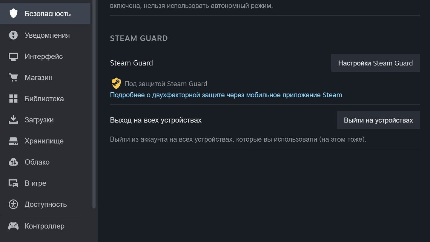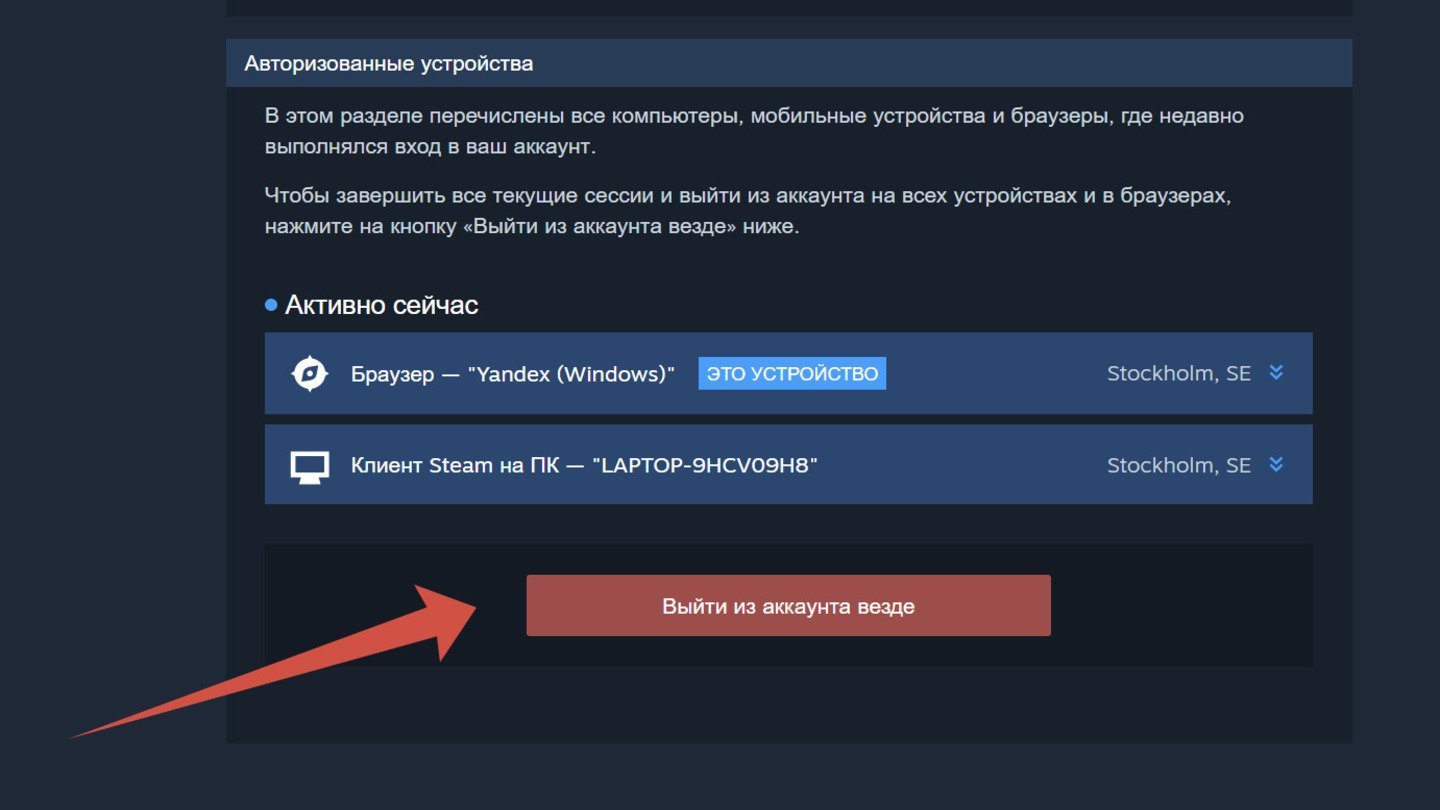 После выхода можно проверить, что Steam-клиент действительно разлогинился на всех устройствах: