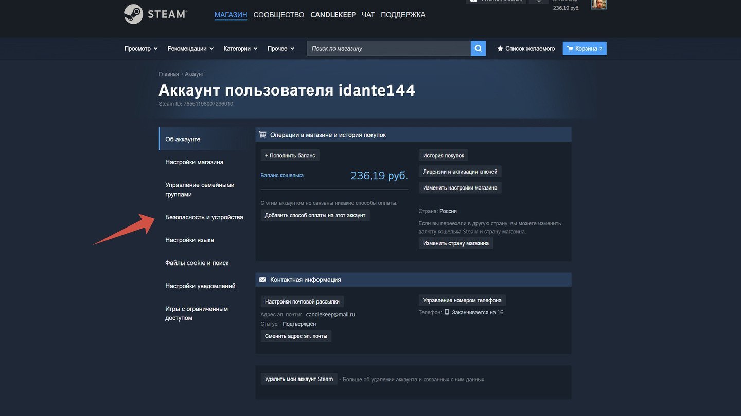 Но если цель не просто покинуть программу, а выйти из Стима на всех устройствах, нужно действовать через веб-интерфейс.