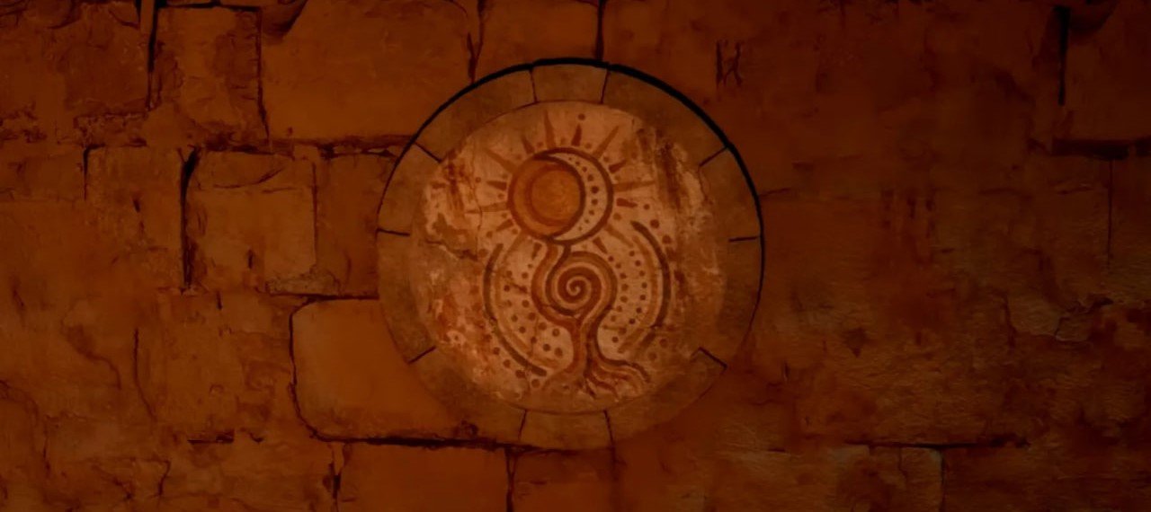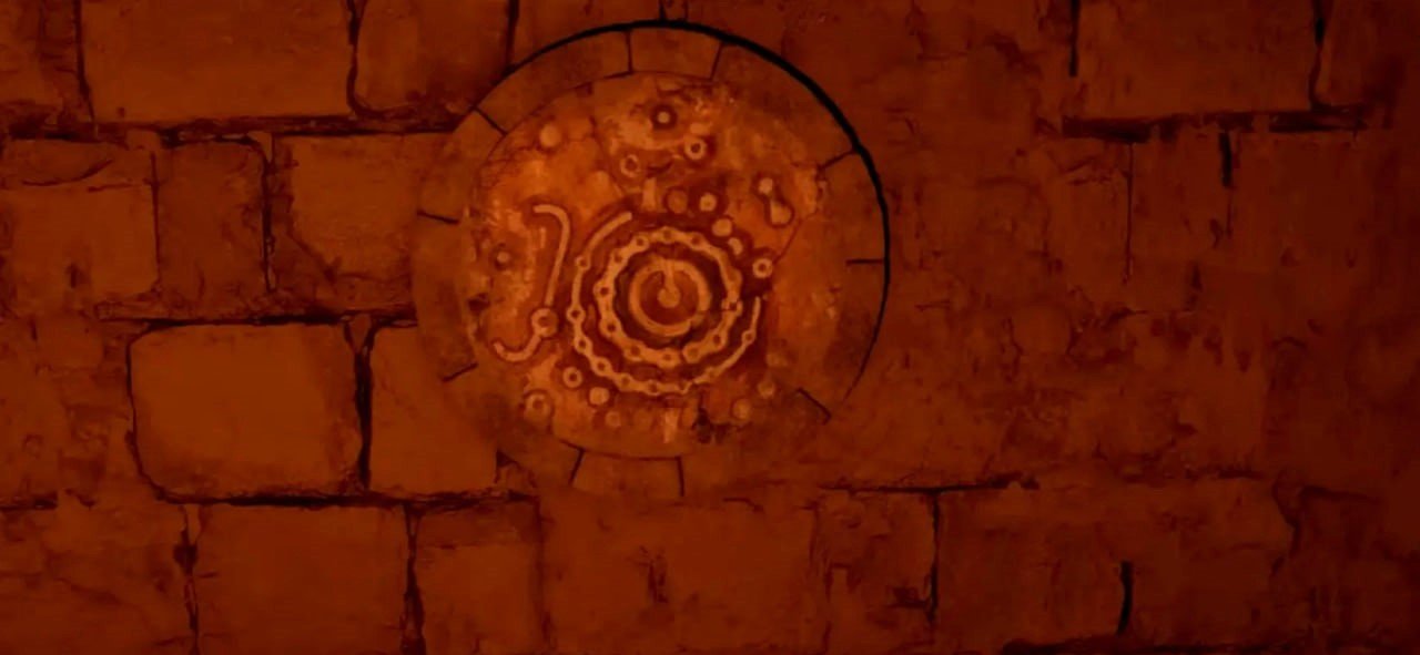 В центре комнаты расположено углубление с тремя каменными дисками, закрепленными на стенках. Каждый диск покрыт уникальным узором, и все они могут вращаться. На первый взгляд кажется, что задача сводится к подбору правильной комбинации методом перебора, но на практике это почти бесполезно. Причина в том, что решение не находится внутри самой комнаты.