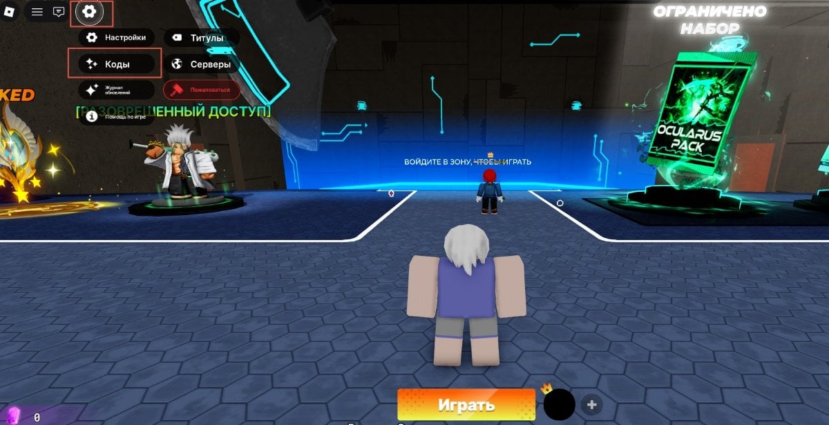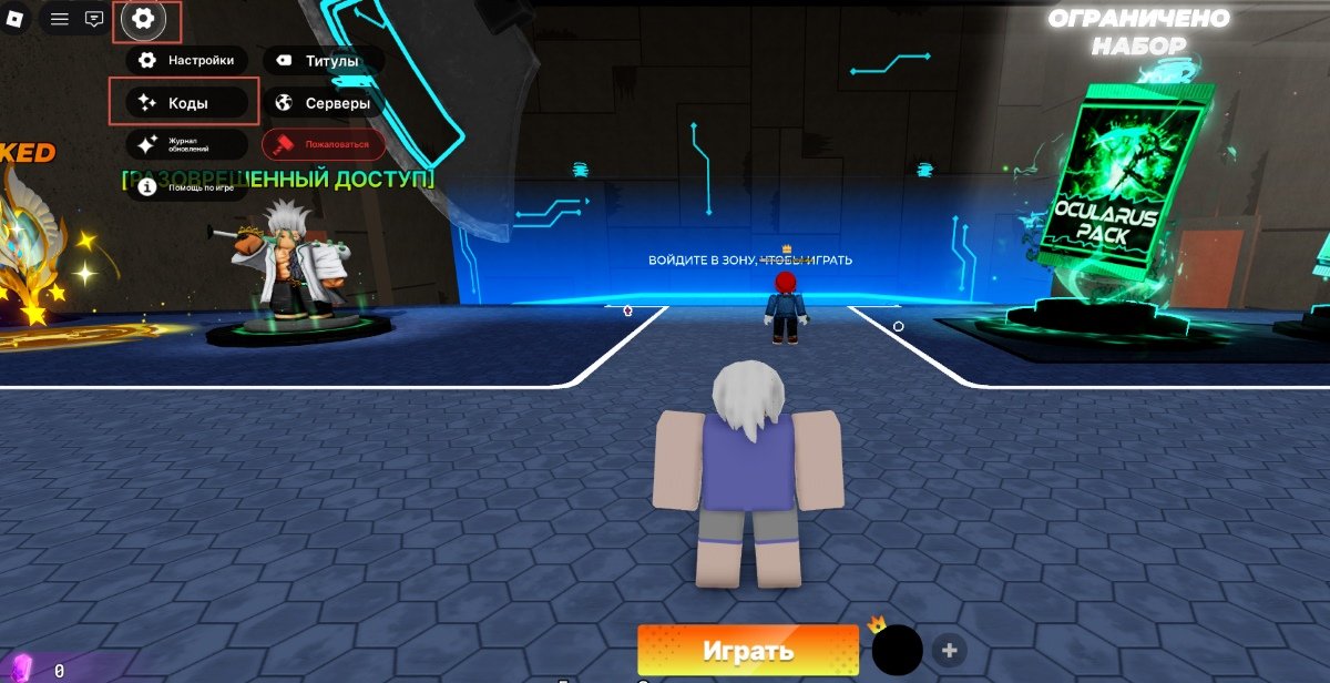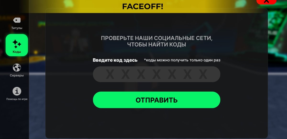 Активация промокода становится доступной после прохождения короткого обучения. Когда вы окажетесь в лобби, кликните на иконку шестеренки, расположенную в левом верхнем углу экрана. Затем выберите вкладку «Коды» — после этого откроется специальное окошко для активации подарочных купонов.