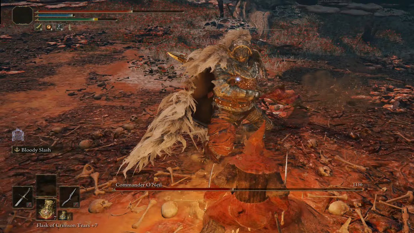 Карта Каэлида с отметкой места появления Командира О’Нила (командир О’Нил охраняет золотую иглу). Следующий шаг — получить золотую иглу. Идите на болото к западу от хижины Гоури, где обитает босс Командир О’Нил. Сразитесь с ним и получите «Изломанную иглу из чистого золота». Бой непростой, но после победы вы получите искомый предмет.