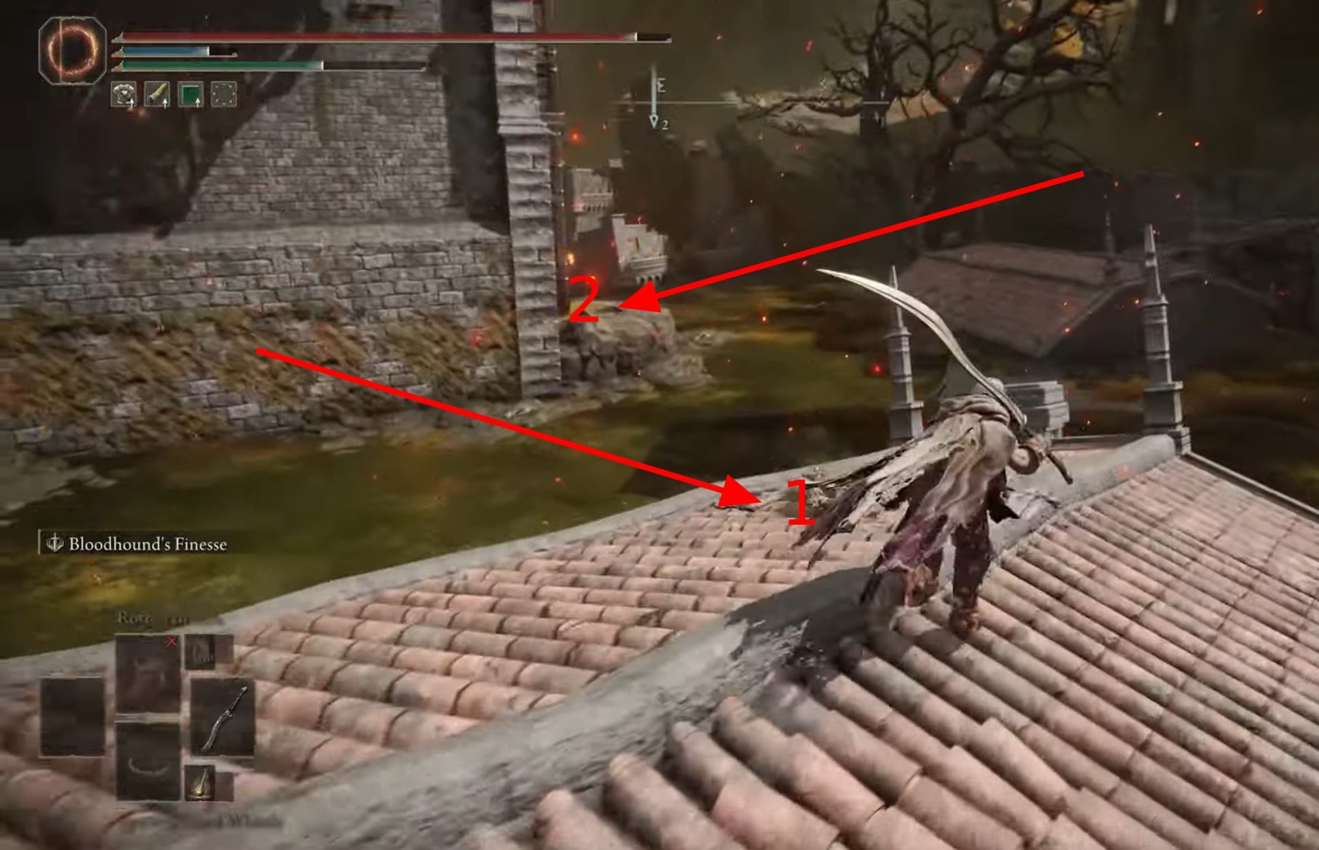 Финал квеста Милисенты наступает в локации Эликейское поле, недалеко от Покинутого храма. После победы над Древесным Духом вы обнаружите два знака призыва рядом с местом благодати: желтый и красный. Именно этот момент решает судьбу героини и ваш доступ к уникальным наградам, включая эмблему с гниющим крылатым мечом — один из самых сильных талисманов для билдов, основанных на комбо-ударах.