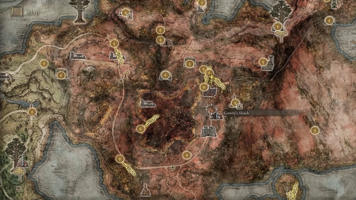 Карта Каэлида с отметкой хижины Гоури (East Caelid, Shack of Gowry). Чтобы запустить цепочку квестов Миллисенты, первым делом найдите хижину Гоури в восточной части Каэлида, на дороге к Селлии. Гоури — старик-маг, который попросит вас достать Иглу из чистого золота. Он знает о том, что она нужна его юной «приемной дочери» Миллисенте и просит вас помочь. Исследуйте окружающую местность, поговорите с npc до конца диалогов и запомните его просьбу.