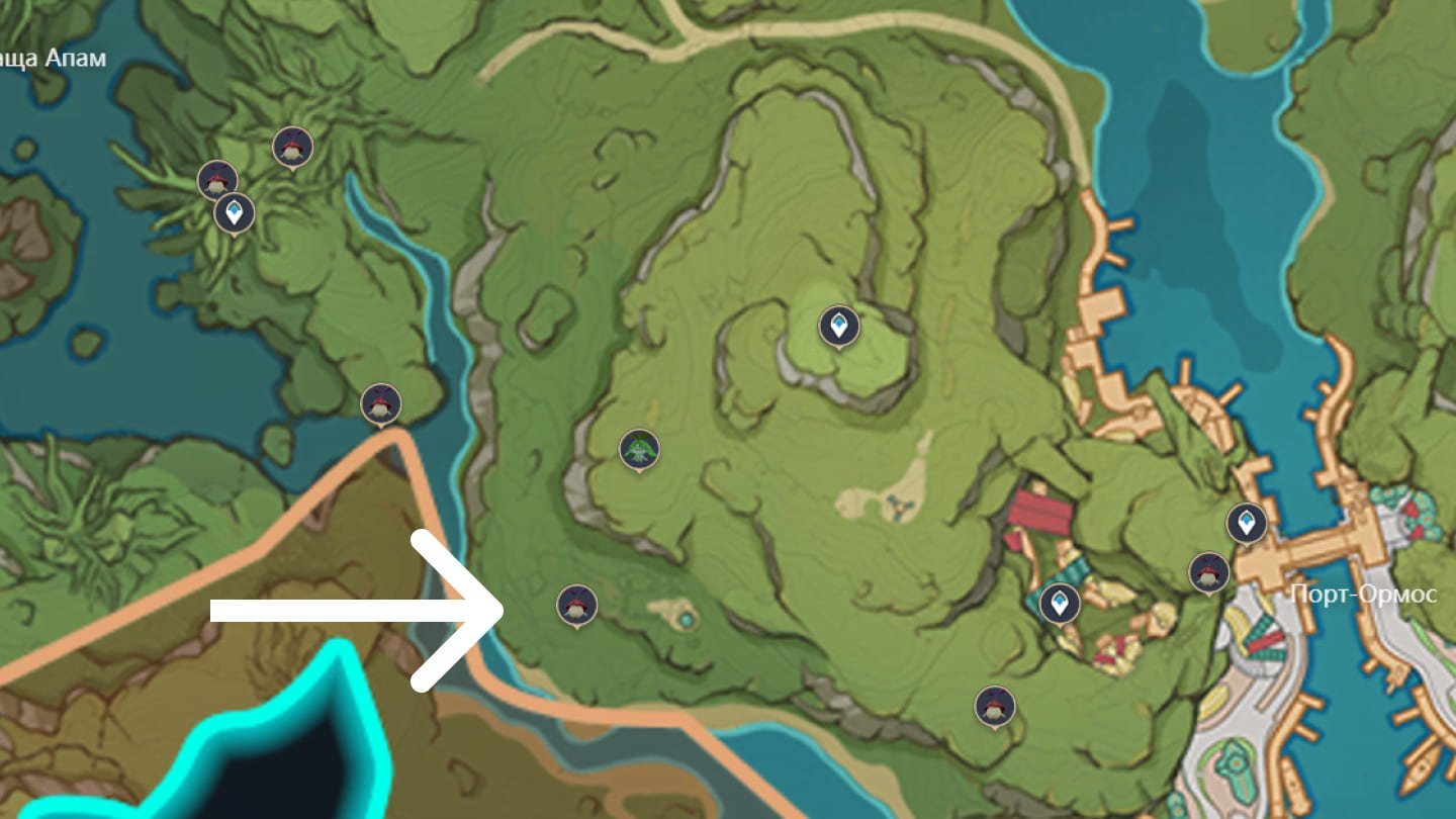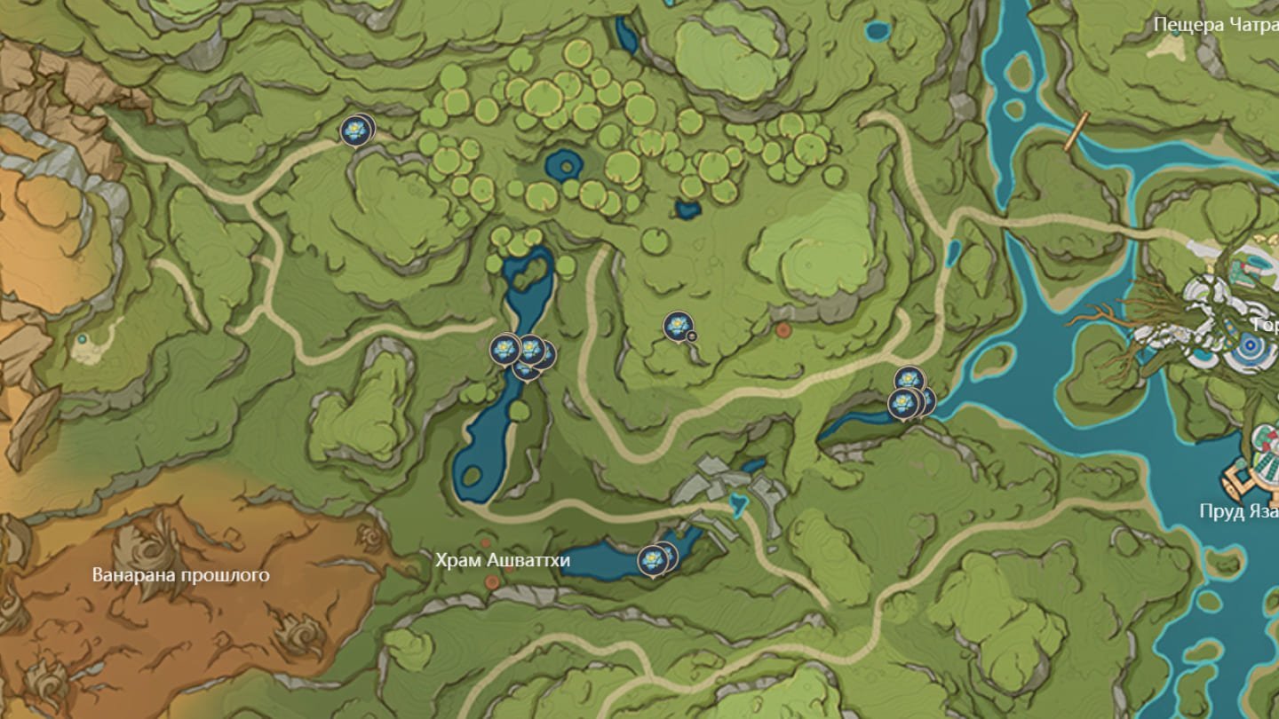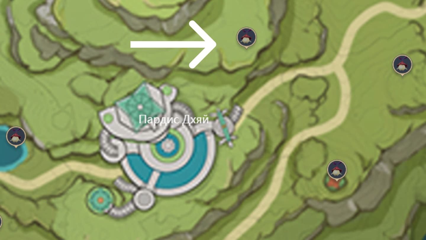 - Третий аранар расположен в юго-восточной части Ванараны. Используйте Дендро-способность, чтобы разбудить его и получить 3 диковинки.
