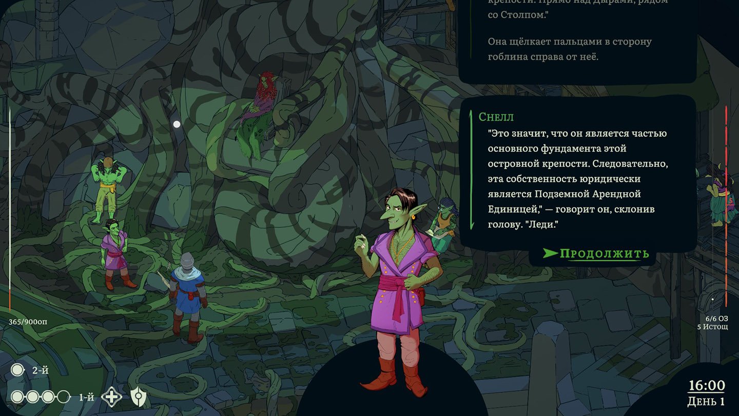 Если в Disco Elysium у нас был один Ким Кицураги, то в Esoteric Ebb все куда разнообразнее. Первым нам выделяют гоблина Снелла. Он нам не особо доверяет, так как Уртх, божество Клирика, когда-то истреблял гоблинов. Но если вы будете развивать арку с ним, то получите отличного друга.