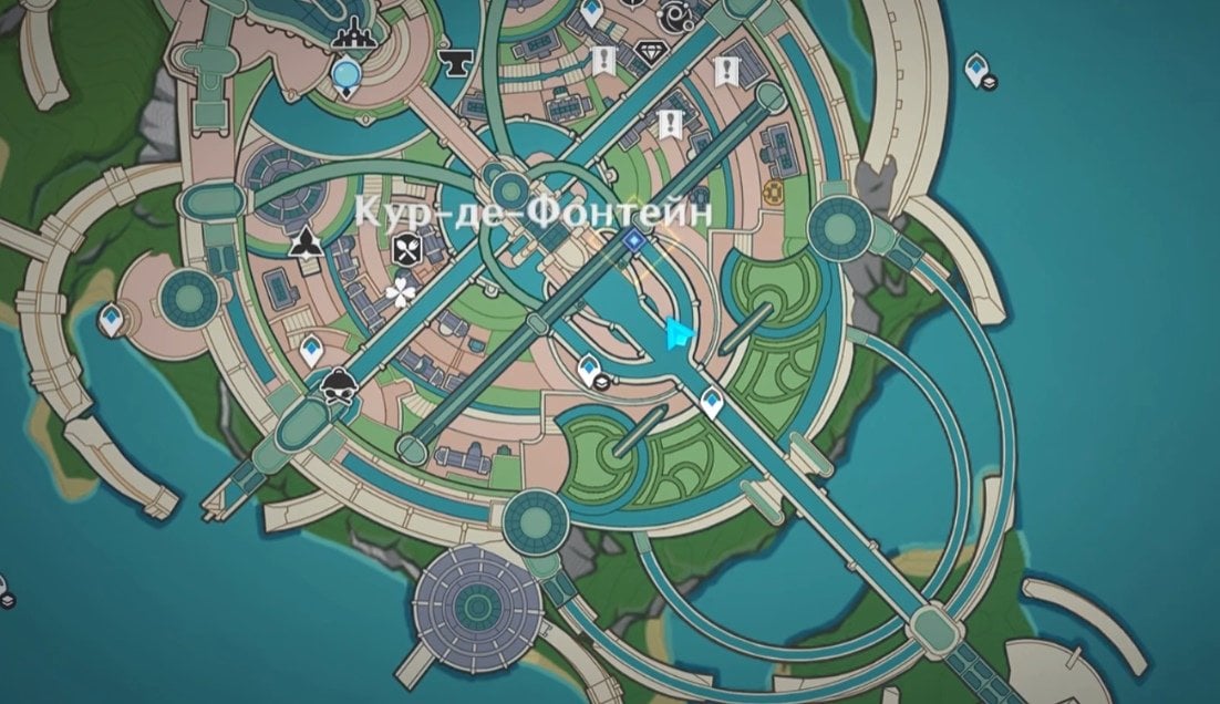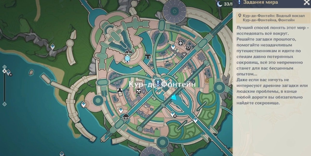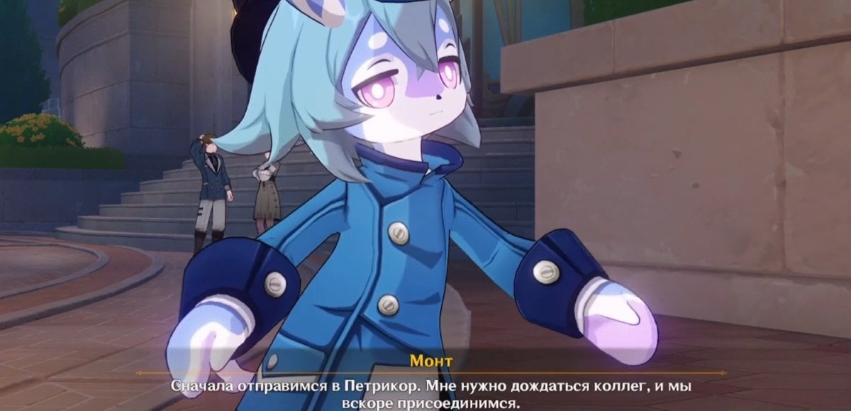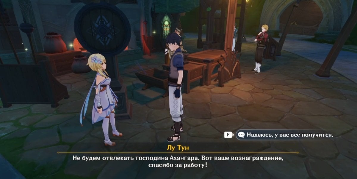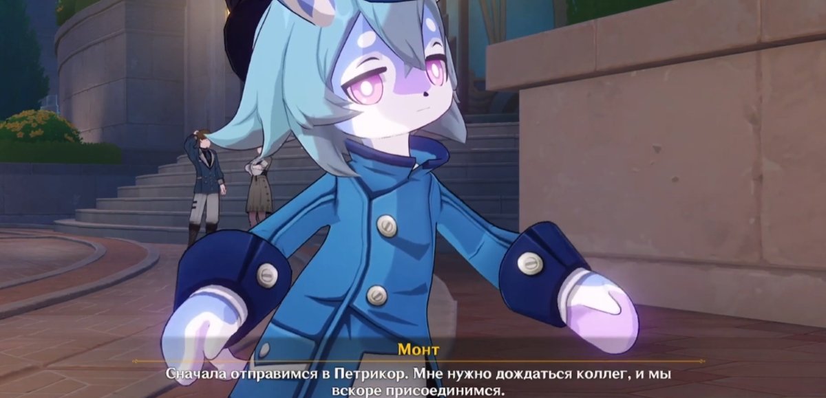 Когда все условия соблюдены, отправляйтесь в Кур‑де‑Фонтейн и идите ко входу на вокзал. Пройдите мимо фонтана, зайдите внутрь здания — слева вы увидите Гарсию и Лу Туна. Далее переместитесь к точке телепортации на северо‑востоке от Фонтана Люсин и двигайтесь в сторону оперного театра «Эпиклез».