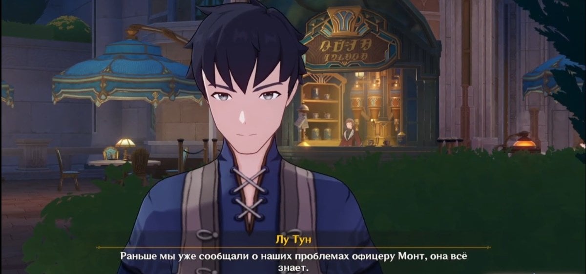 Телепортируйтесь на юго‑запад города к кафе «Лютес». Подойдите к отметке квеста возле столиков — Лу Тун укажет на преследователей неподалеку. Он предложит позвать на помощь мелюзину‑офицера Монт, которой уже рассказывал о проблеме.