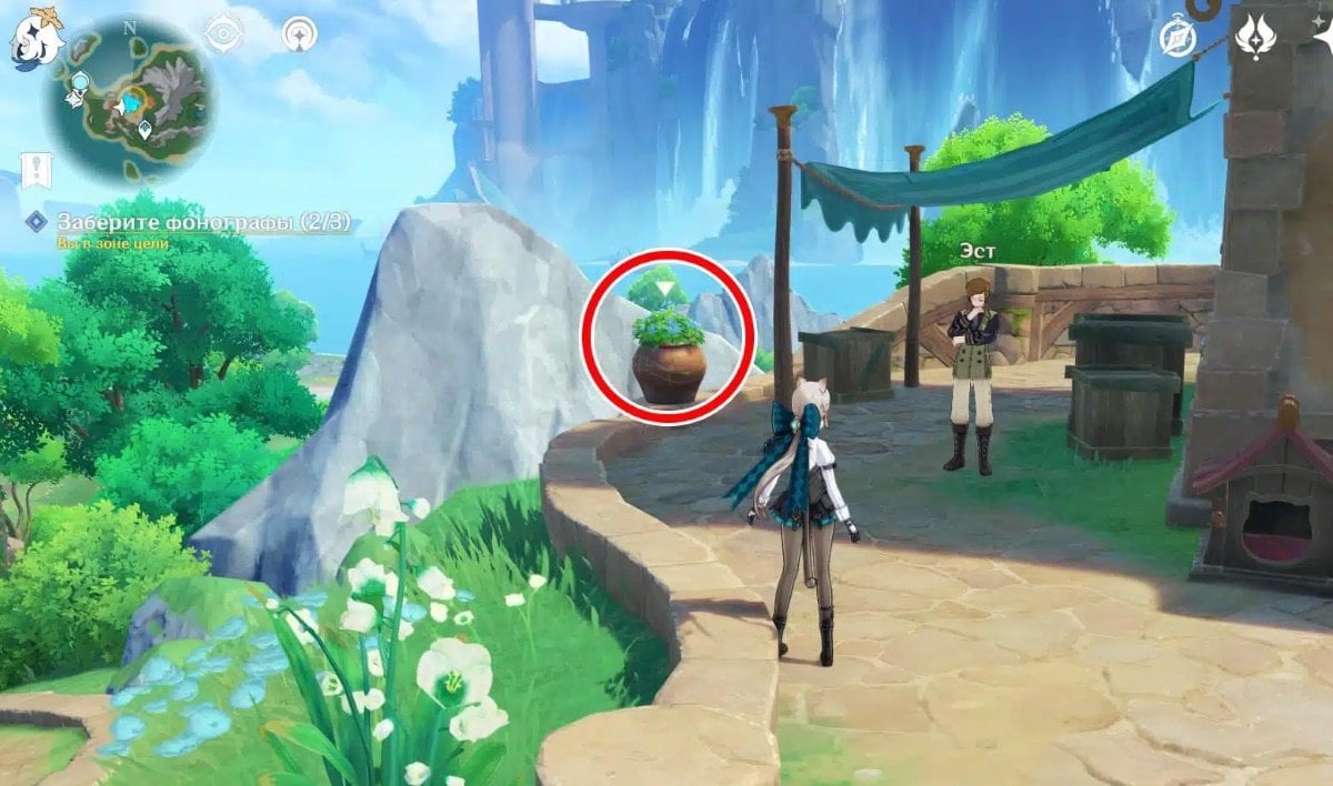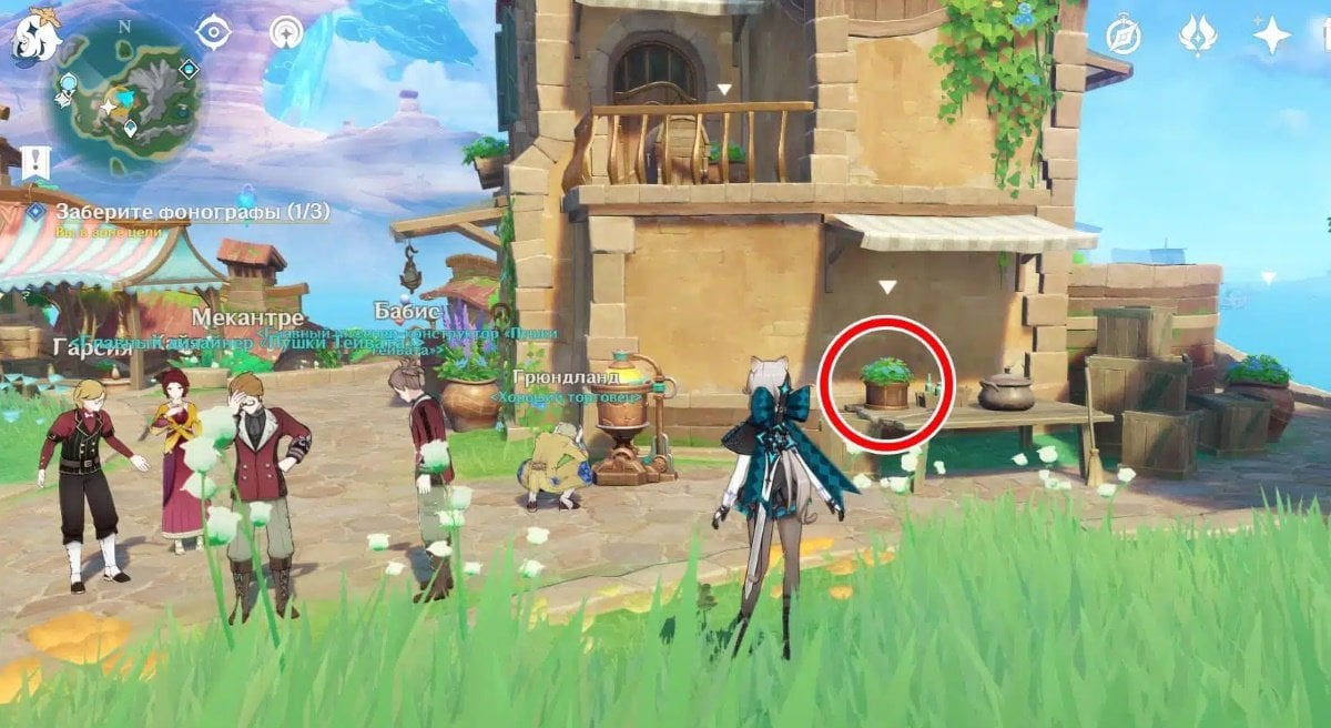 Теперь ваша задача — найти эти фонографы. Осмотрите цветочные горшки рядом: вам нужно отыскать и забрать три устройства. Собрав все фонографы, вернитесь к группе и поговорите с Грюндландом. Местные жители расскажут, что им приснился сон, в котором они видели себя каменными статуями из Ремурии. Путешественник объясняет, что это связано с симфонией Фобоса из цепочки квестов «Оды Гармонии».