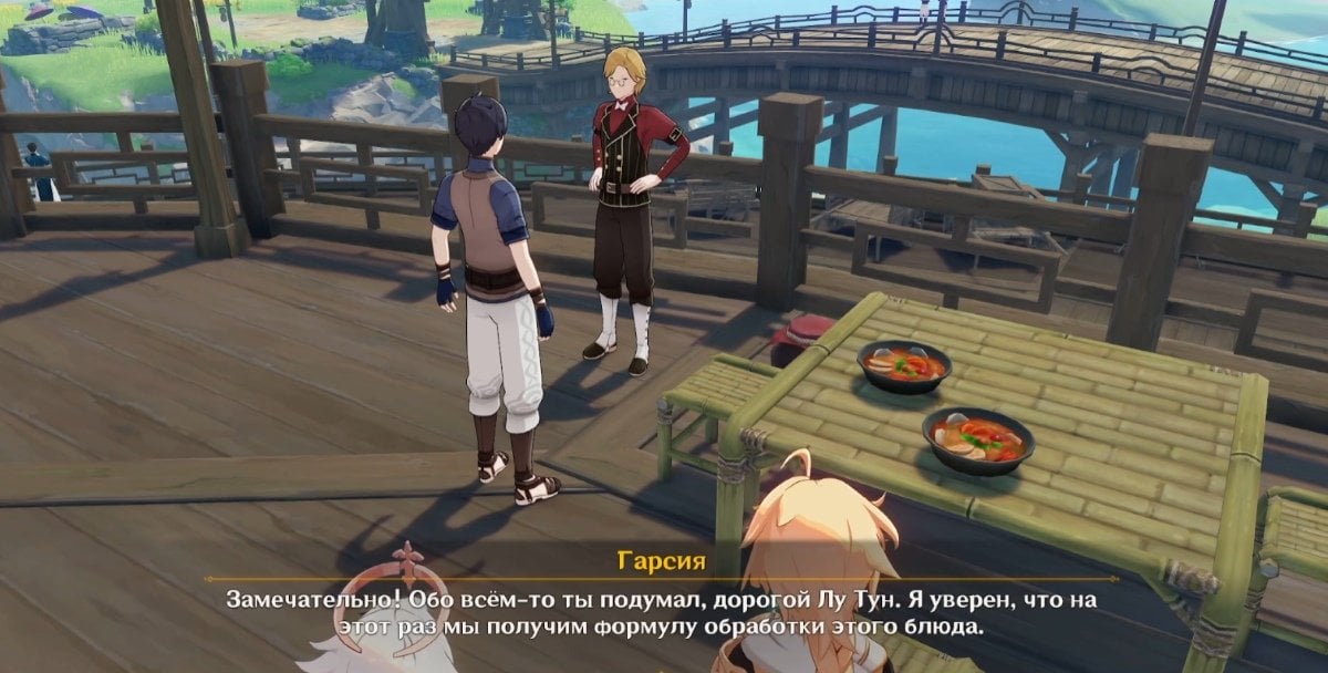 Приготовив суп, отдайте его Гарсии. После этого вы снова окажетесь в том месте, где начали квест. За совместным обедом Гарсия расскажет, что собирается отправиться в Сумеру — там он планирует изучить ресурсы Академии. Также он намекнет, что вы еще встретитесь. На этом задание завершается, и вы получаете заслуженные награды.