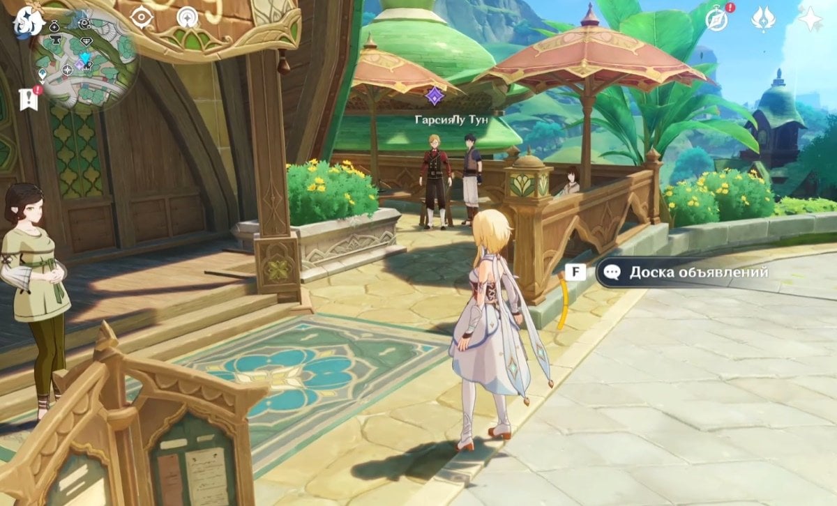 Когда квест появится в вашем журнале заданий, отправляйтесь в Город Сумеру и найдите Гарсию возле кафе «Пуспа» — он будет в компании двух других персонажей. Изобретатель обратится к вам с просьбой: ему нужно приобрести несколько брошей, которые носят похитители сокровищ.