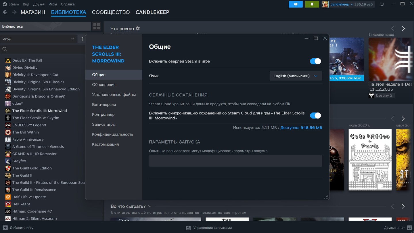 - Установка новой игры из библиотеки Steam;