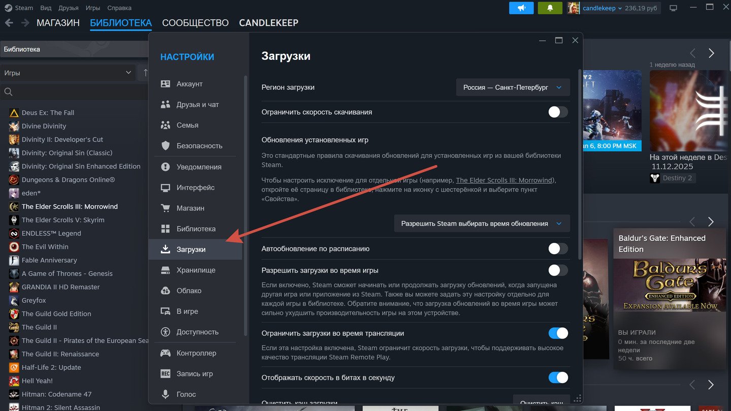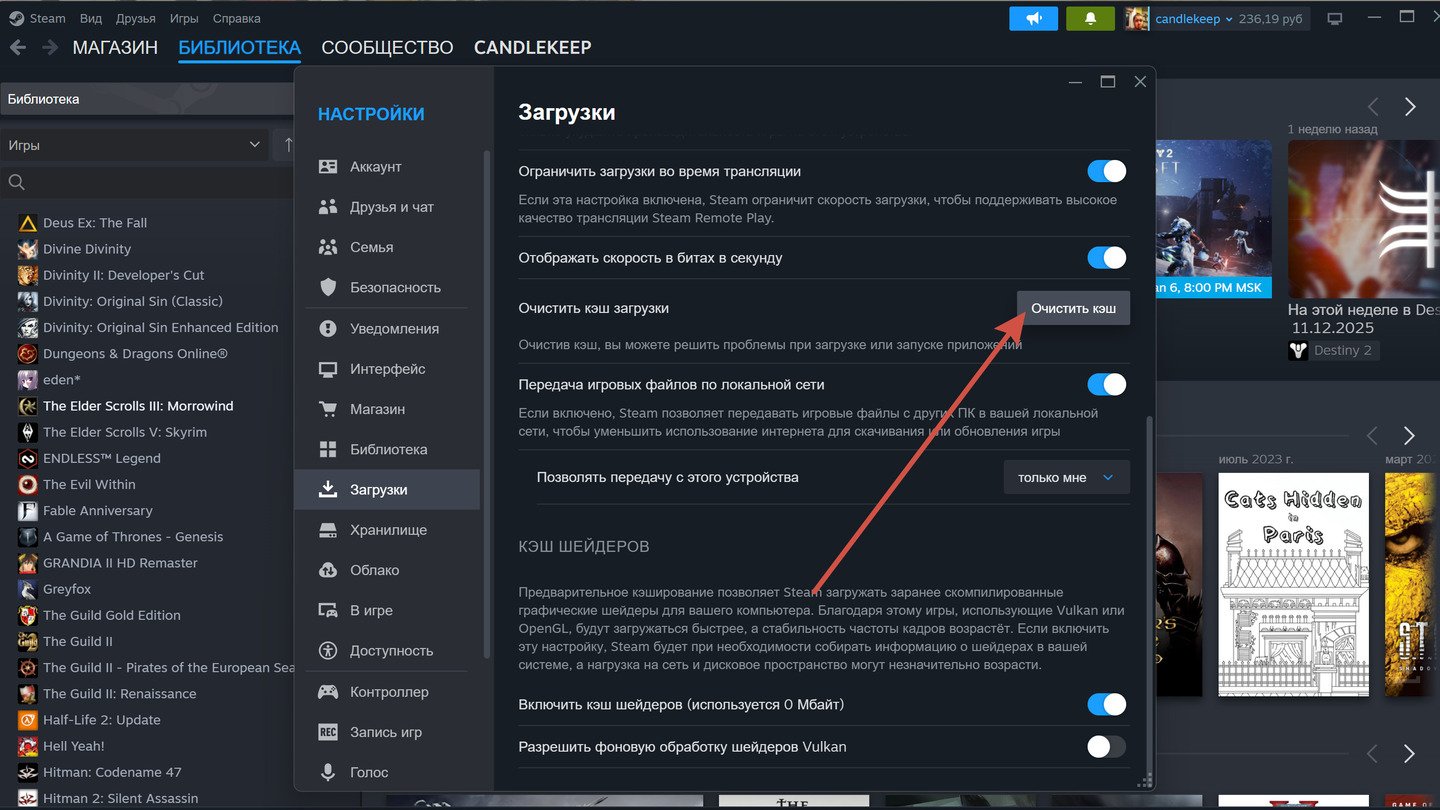 Очистите кэш загрузки Steam