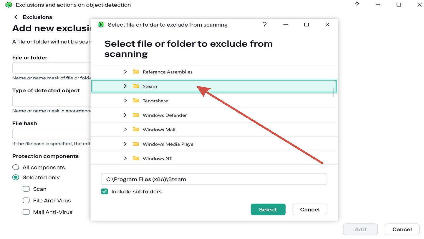 Иногда антивирусные программы ошибочно блокируют процессы Steam, считая их подозрительными. Для проверки временно отключите защиту и попробуйте установить игру. Если ошибка исчезла, добавьте Steam и папку с играми в список исключений антивируса.