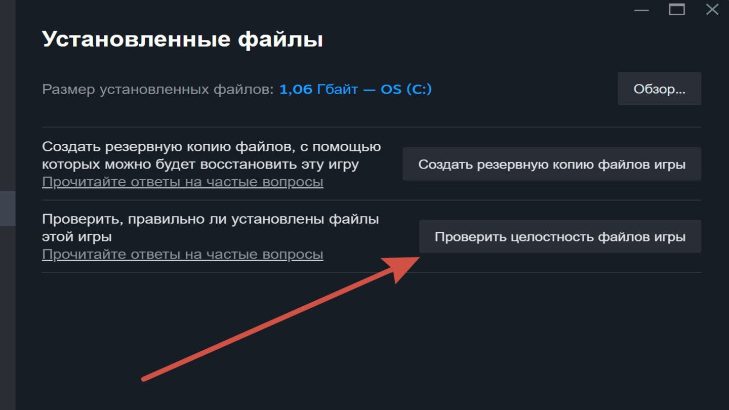 Проверьте целостность файлов игры