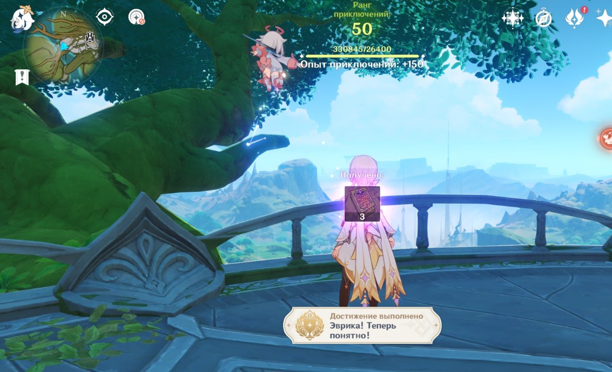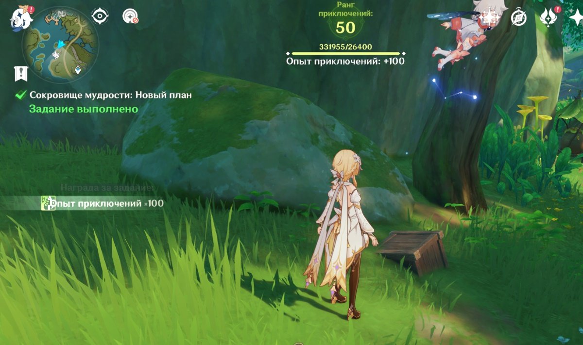 После того как поговорите с ним, вам дадут ачивку и другие полезные награды. Серия загадок на этом завершится. На следующие реальные сутки у вас появится возможность начать новое задание, связанное с этим ученым, — Сокровище мудрости новый план Геншин Импакт.