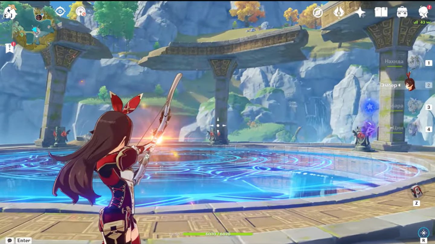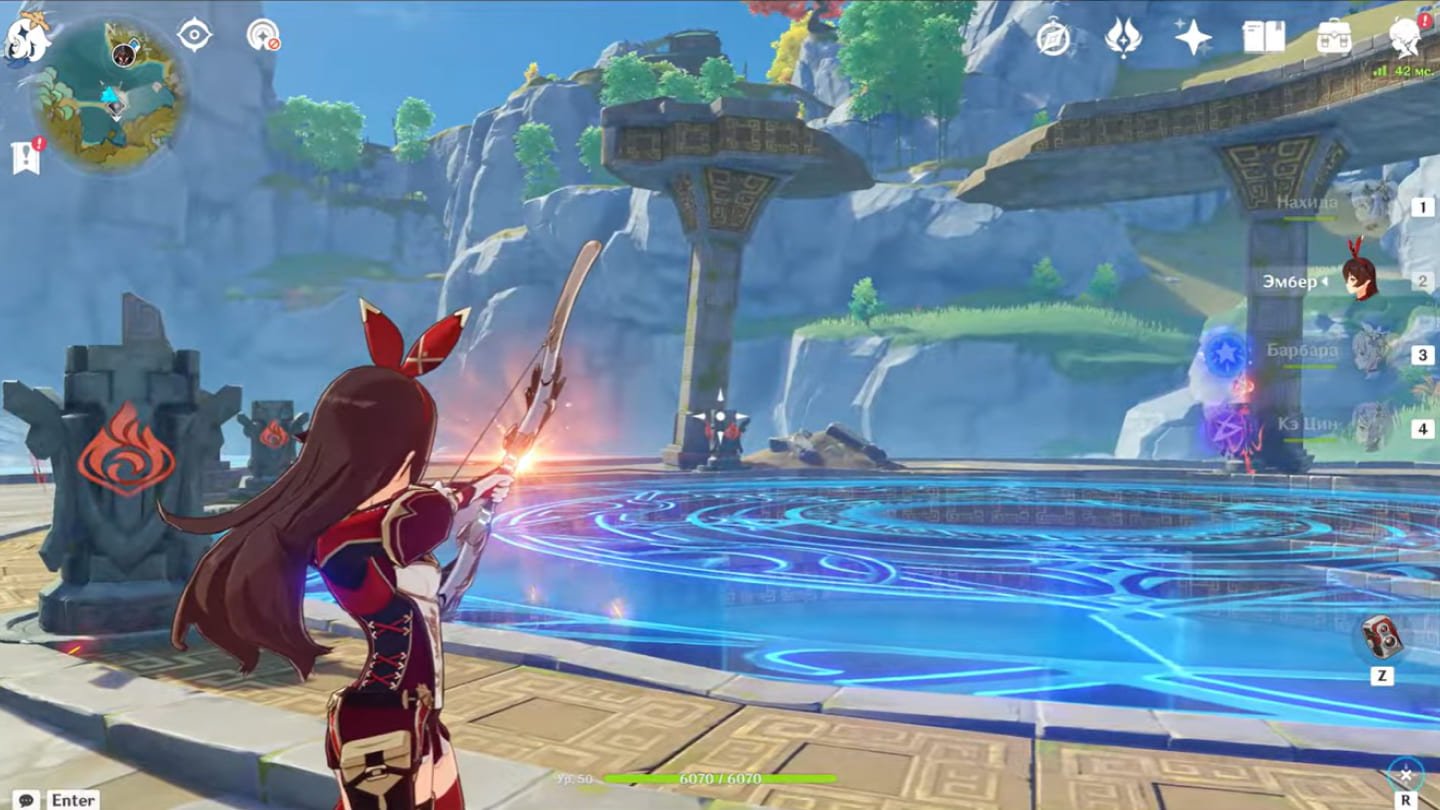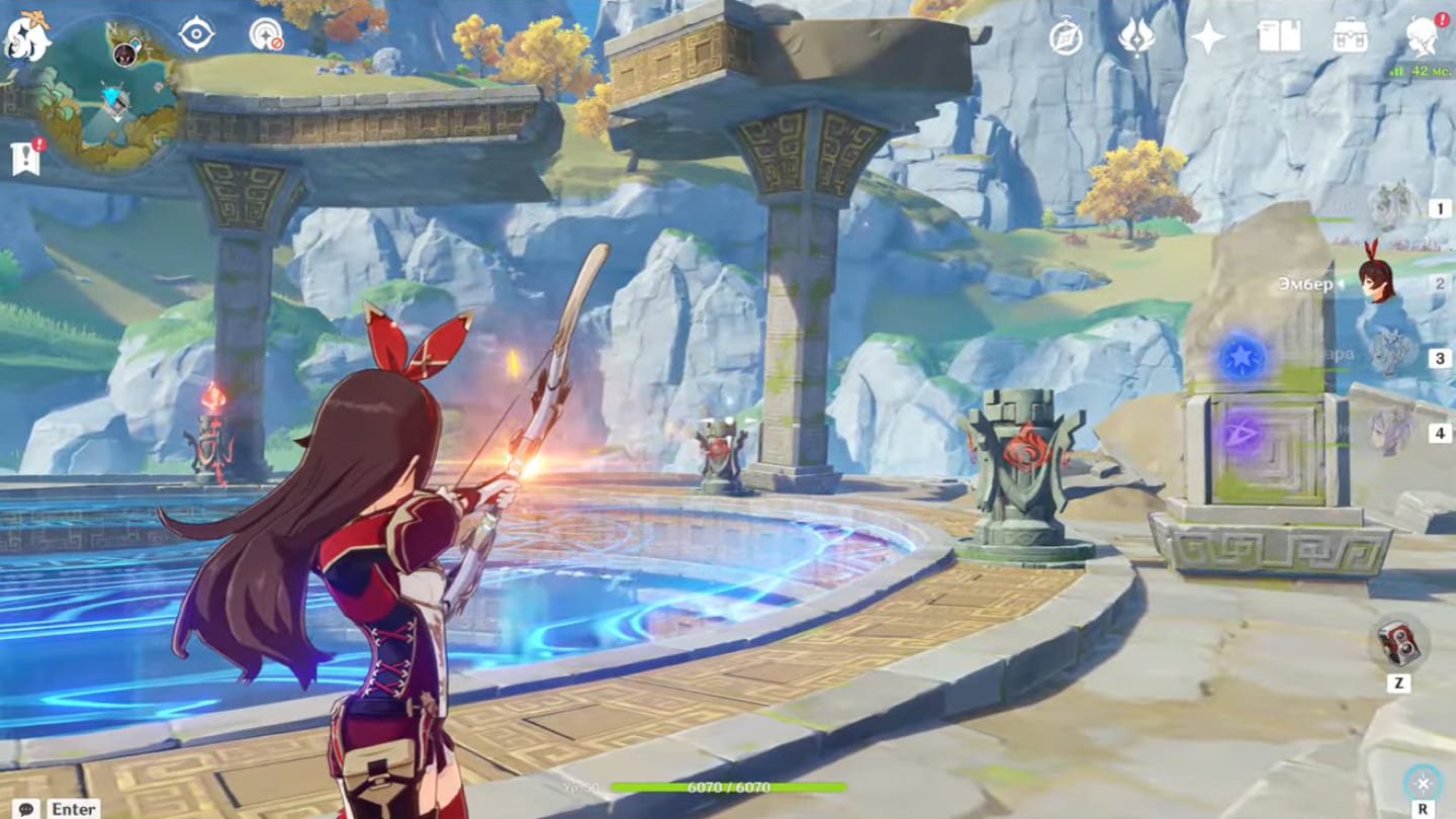 Главная сложность заключается в том, что если активировать монументы хаотично, печать не спадет. Перед началом возьмите в отряд персонажа со стихией Пиро. Лучше всего подойдут Эмбер или Ёимия, так как их прицельные выстрелы позволят зажечь факелы, не сходя с места.
