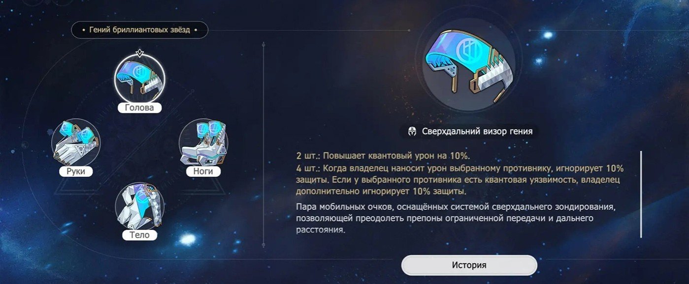 Но если у вас в отряде есть Серебряный Волк или на противниках есть квантовая уязвимость, Цзинлю отлично реализует сет Гения бриллиантовых звезд. 2 предмета дают бесполезный для нее бонус квантового урона, зато 4 предмета позволяют игнорировать 10% защиты врага при атаке, и еще 10%, если на нем есть квантовая уязвимость.