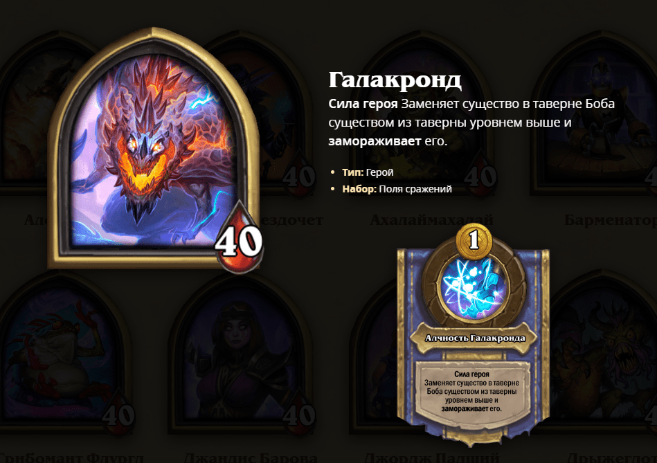 Сила героя золотит существо на вашем столе (не в таверне боба) и не возвращает его в руку! Так что не нужно золотить тех существ, что дают эффект при разыгрывании из руки. Самыми сладкими целями становятся Бранн Бонзобород, барон Ривендер, жонглёр душами, Кадгар или стяжатель. Конечно, можно начать агрессировать с самого начала и позолотить заклинателя гнева, который после каждого разыгранного демона будет получать +4/+4, что на раннем этапе значительно усилит вас. Практически все тир шесть существа смогут изменить ход встречи и помочь вам взлететь на первое место. Но будьте осторожны, до шестой таверны можно и не дожить.