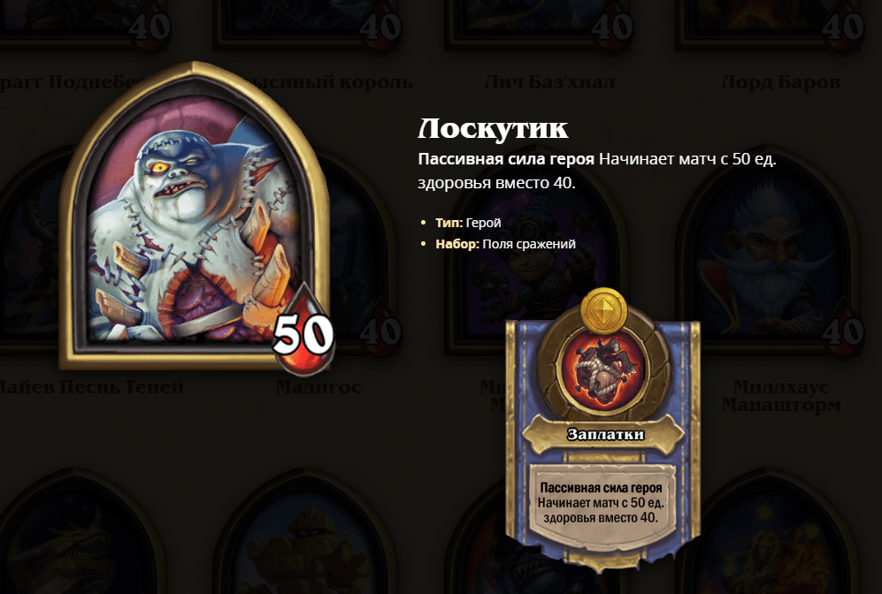 В начале Лоскутик был хорош. Даже слишком. Вы начинали матч с 60 ед. здоровья вместо 40 ед. Это позволяло игрокам играть достаточно жадно и иногда повышать уровень таверны, заведомо зная, что на ранних этапах больше 3-4 урона вы не получите. Излюбленная стратегия на нём - демоны и заклинатели гнева. Они наносят вам много урона в ранней стадии, пока вы не доживёте до вербовки вечного "МалГаниса". А потом ключевой картой являлся "Аннигилятор-воевода" который получал увеличенное здоровье на величину, равную полученному вами урону. А если ещё найти Брана, то пудж становился очень грозным соперником. Однако, сейчас его пассивка дает всего - лишь 10 дополнительных единиц здоровья которые ни к селу, ни к городу. Так что рекомендуем пропускать его при выборе.