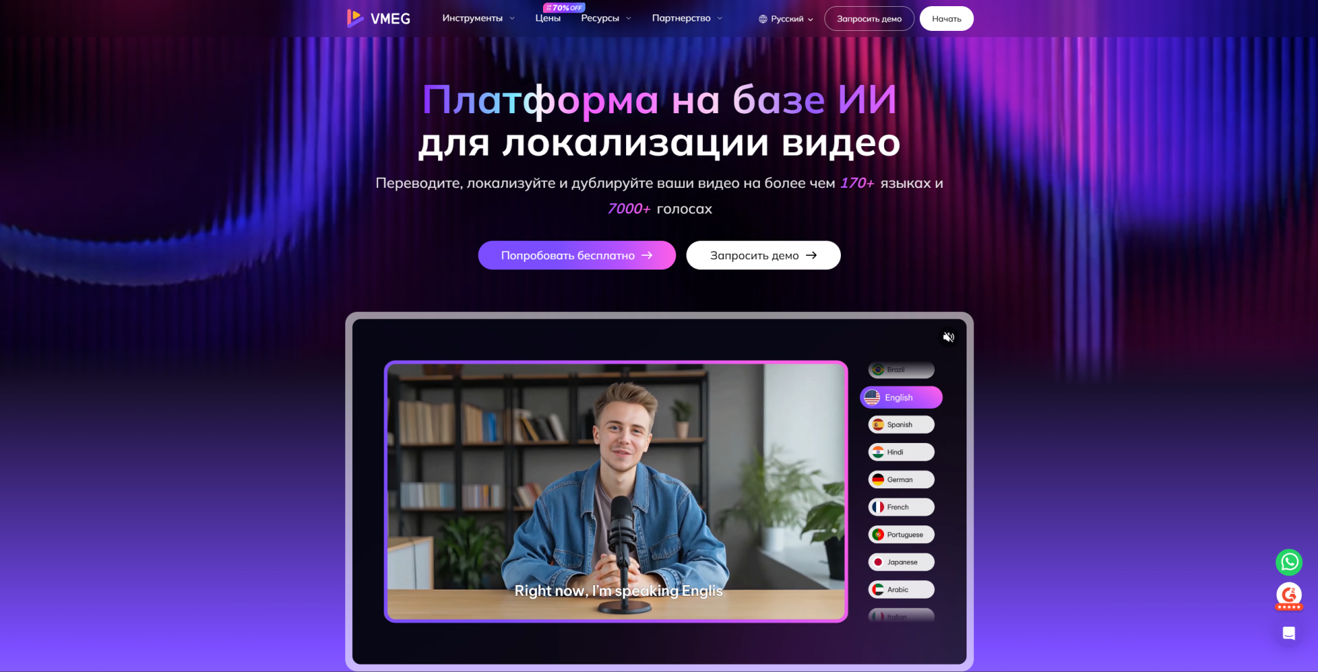 Раньше перевод требовал огромного бюджета, актёров и студии. Теперь — несколько минут, пару кликов и ИИ-инструмент вроде VMEG AI, который делает всё сам и без потери качества.