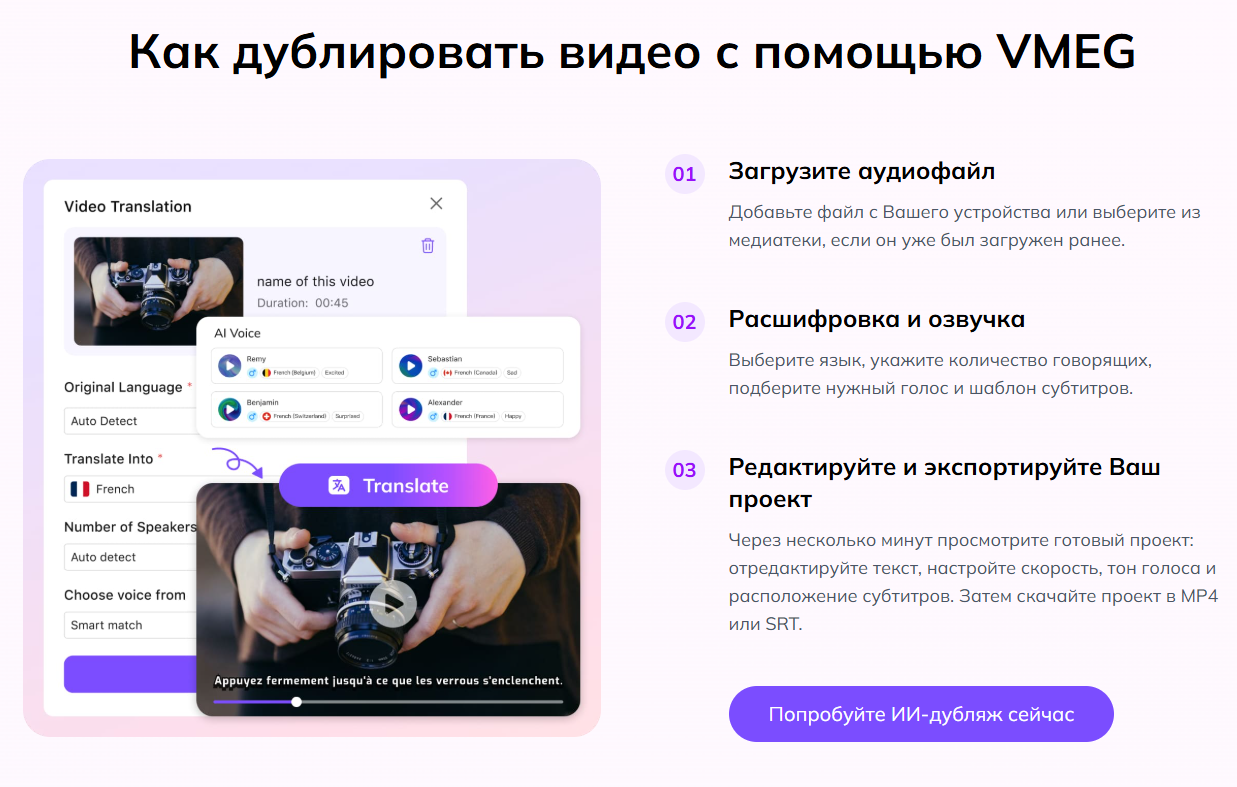 Лучший инструмент для ИИ-переводов: VMEG AI