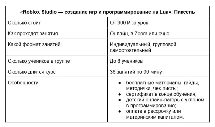 «Roblox Studio — создание игр и программирование на Lua». Пиксель